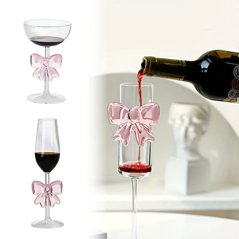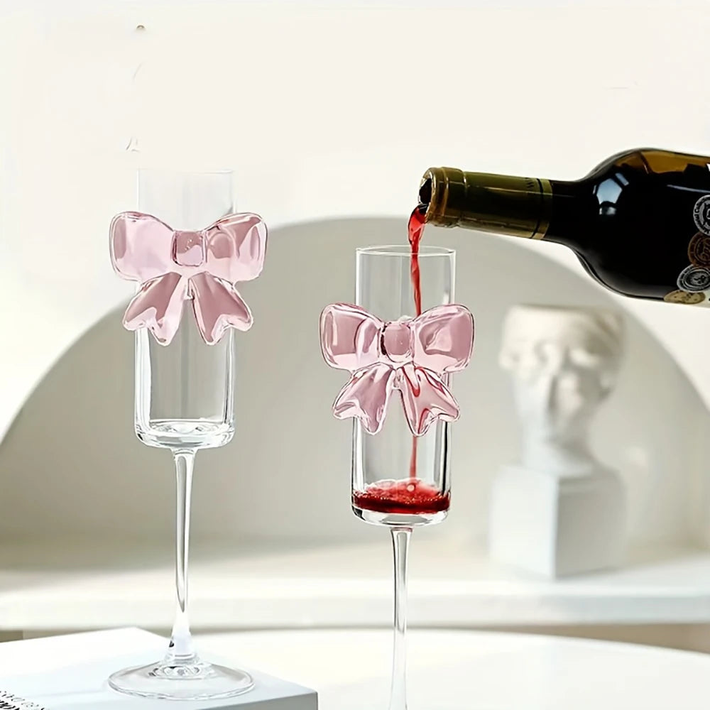 Erfreuen Sie sich an jedem Schluck mit unserem kreativen pinken Schleifen Champagnerglas, einer exquisiten Verbindung von Kunstfertigkeit und Funktion, perfekt für Familienessen und festliche Outdoor-Partys.