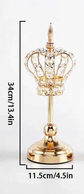 Dieser Vintage-Kristallkerzenhalter verwandelt Ihren Raum elegant mit seinen goldenen Akzenten und dem Kronendesign. Perfekt für jede Gelegenheit.