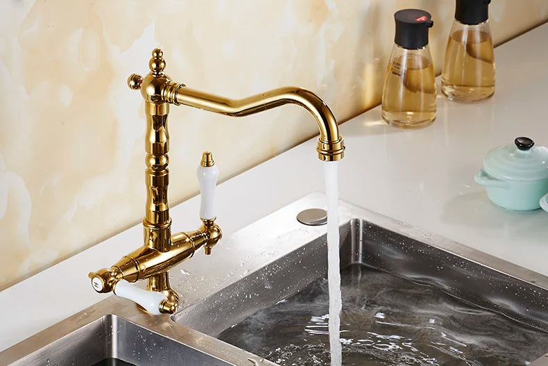 Verbessern Sie die Ästhetik Ihrer Küche mit unserer Messing- und Goldarmatur, die sowohl Luxus als auch Praktikabilität bietet.