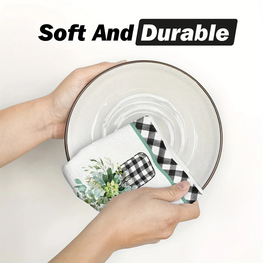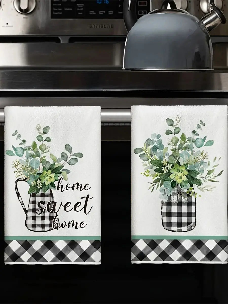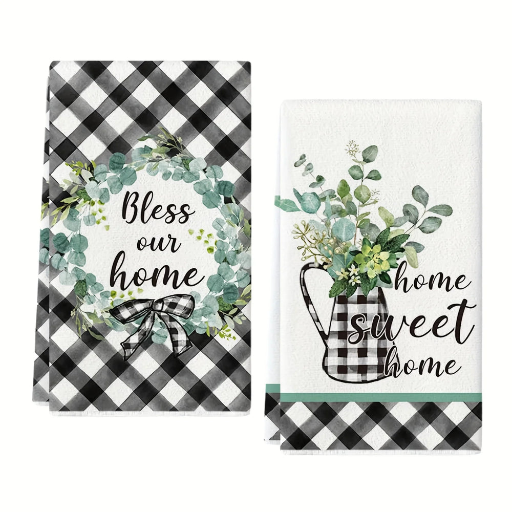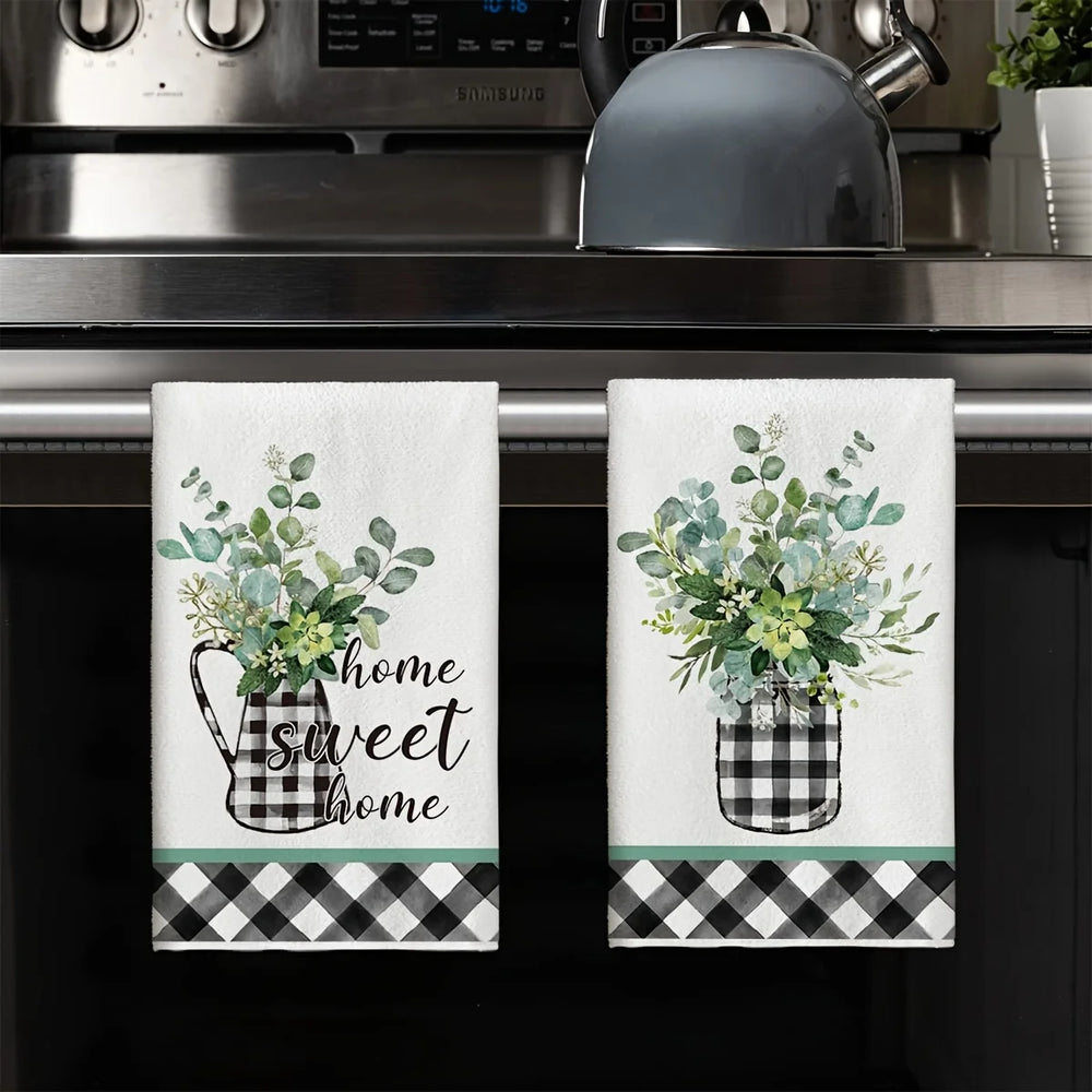 Verwandeln Sie Ihre Küche mit unseren 2-teiligen Küchentüchern im Büffelkaro-Eukalyptus-Druck, die sowohl Stil als auch Nutzen für den Alltag bieten.