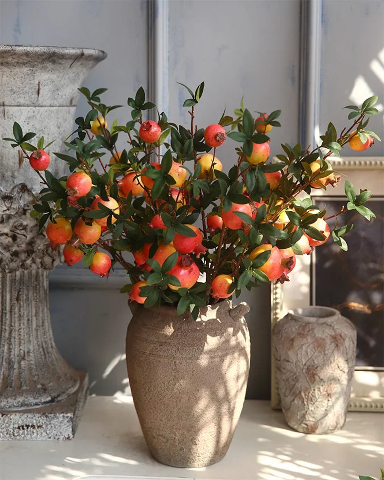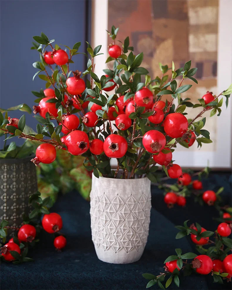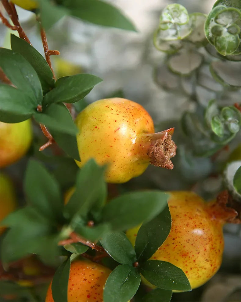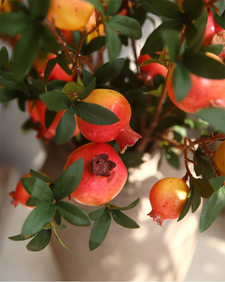 Holen Sie sich die lebendige Schönheit der Natur in Ihre Räume mit unseren sorgfältig gefertigten künstlichen Granatäpfeln, die zeitlose Eleganz in Ihr Umfeld bringen.