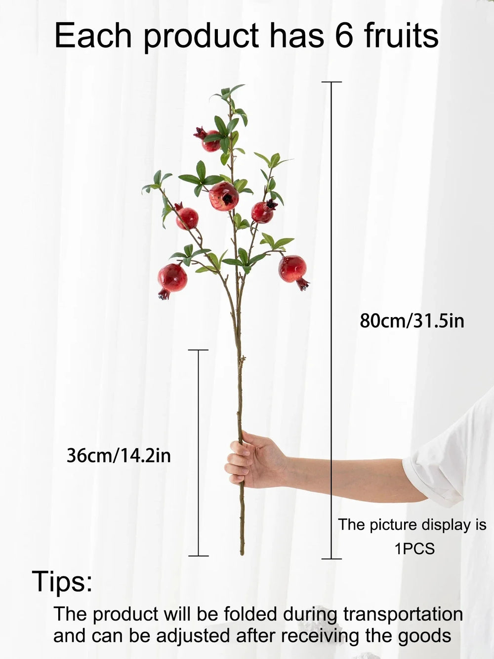 Verwandeln Sie jeden Raum in ein elegantes Refugium mit unserem künstlichen Granatapfelzweig. Perfekt zur Verbesserung des Ambientes bei Hochzeiten, Jubiläen oder für eine einfache Wohnungsdekoration.
