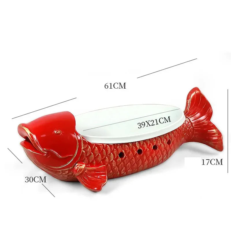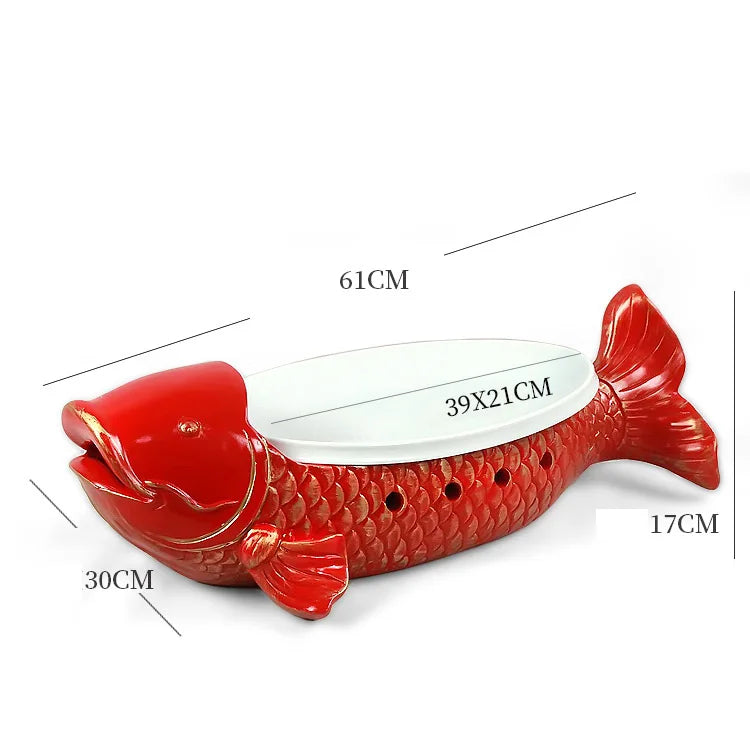 Bereichern Sie Ihren Esstisch mit diesem einzigartig gestalteten Keramikteller "Roter Karpfen", ideal für Zuhause und Restaurant.
