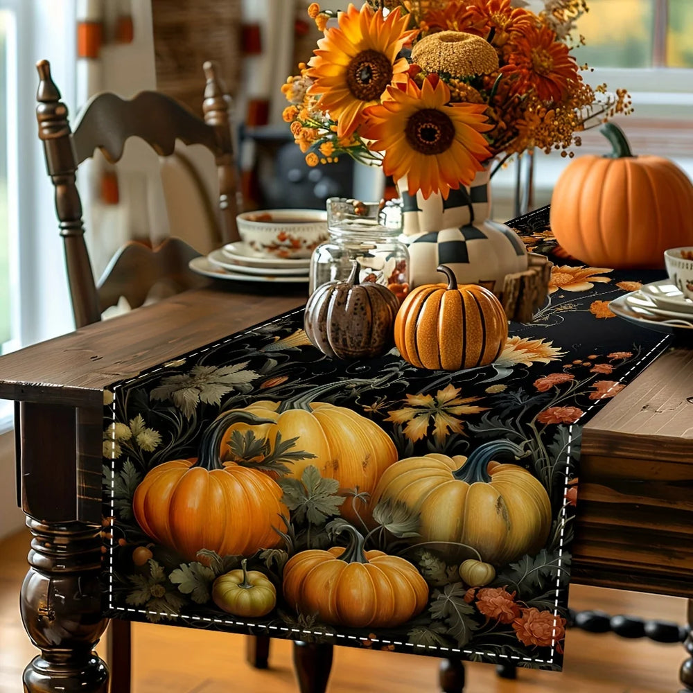 Dieser herbstlich inspirierte Tischläufer mit seinem charmanten Kürbisdesign wird Ihr Esszimmer sofort aufwerten. Perfekt, um eine warme und einladende Atmosphäre in Ihrem Zuhause oder Restaurant während der Erntesaison zu schaffen.