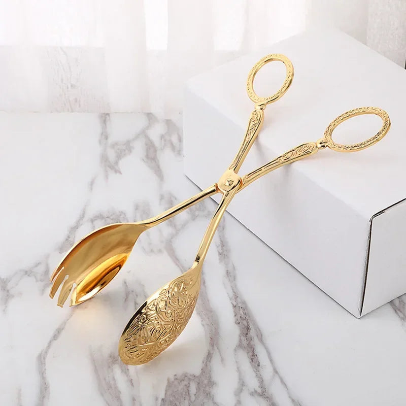 Bereichern Sie Ihre kulinarische Präsentation mit diesen eleganten, vergoldeten Zangen, perfekt für Hobbyköche und Profis.