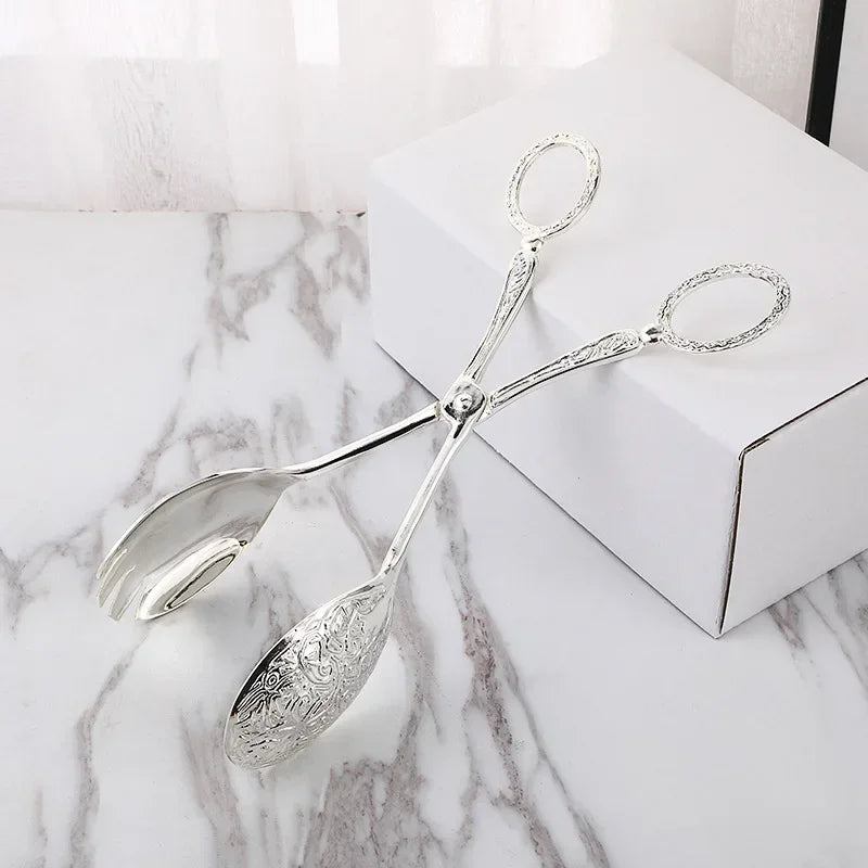 stil 3: silberne servierzangen für kuchen,zangen in der küche