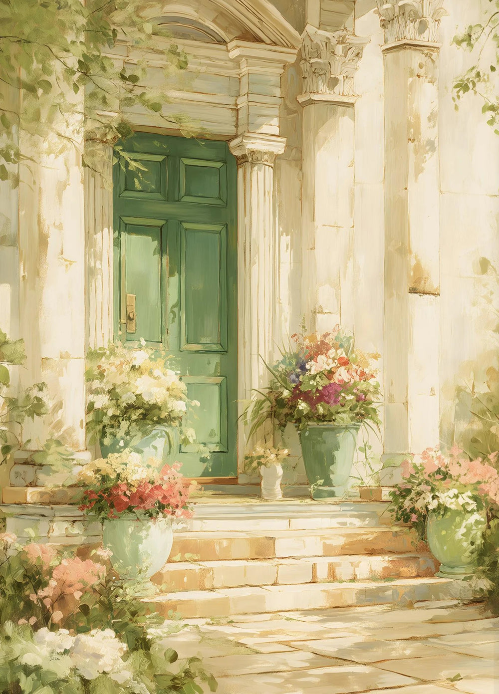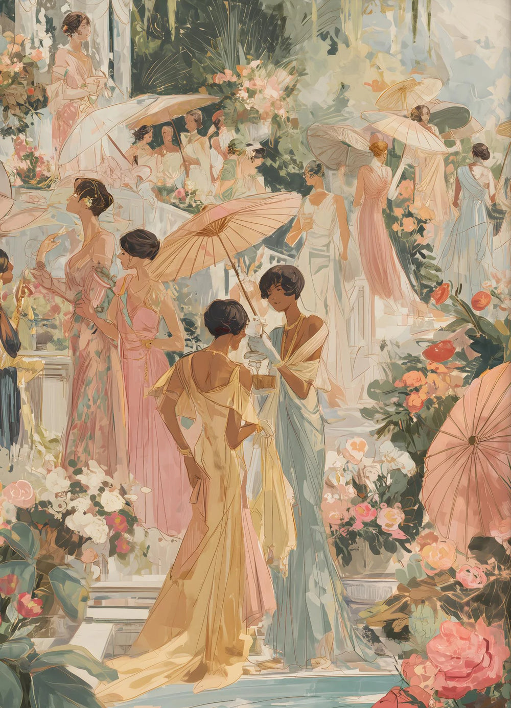 Unser Rokoko Garten Leinwanddruck bringt einen Hauch von moderner Eleganz in Ihr Zuhause und bietet eine lebendige und stilvolle Ergänzung für jeden Raum.