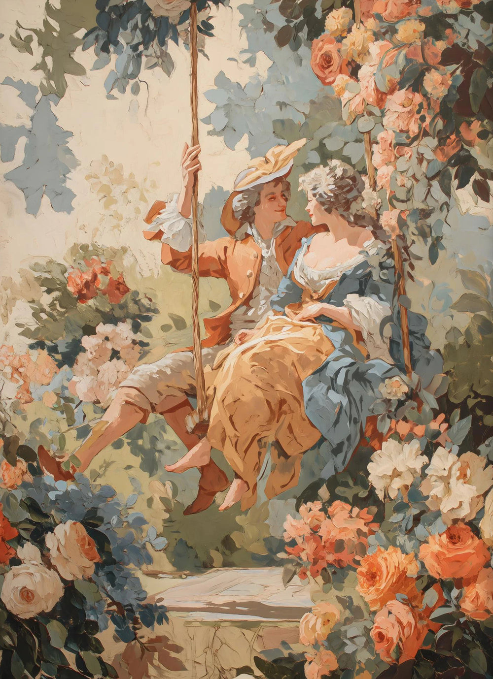 Erhöhen Sie Ihre Wohnkultur mit unserer exquisiten Rokoko Garten Leinwand, einer perfekten Mischung aus modernem Stil und künstlerischem Flair.