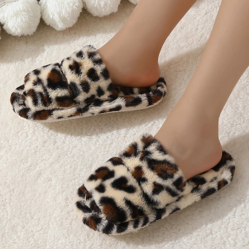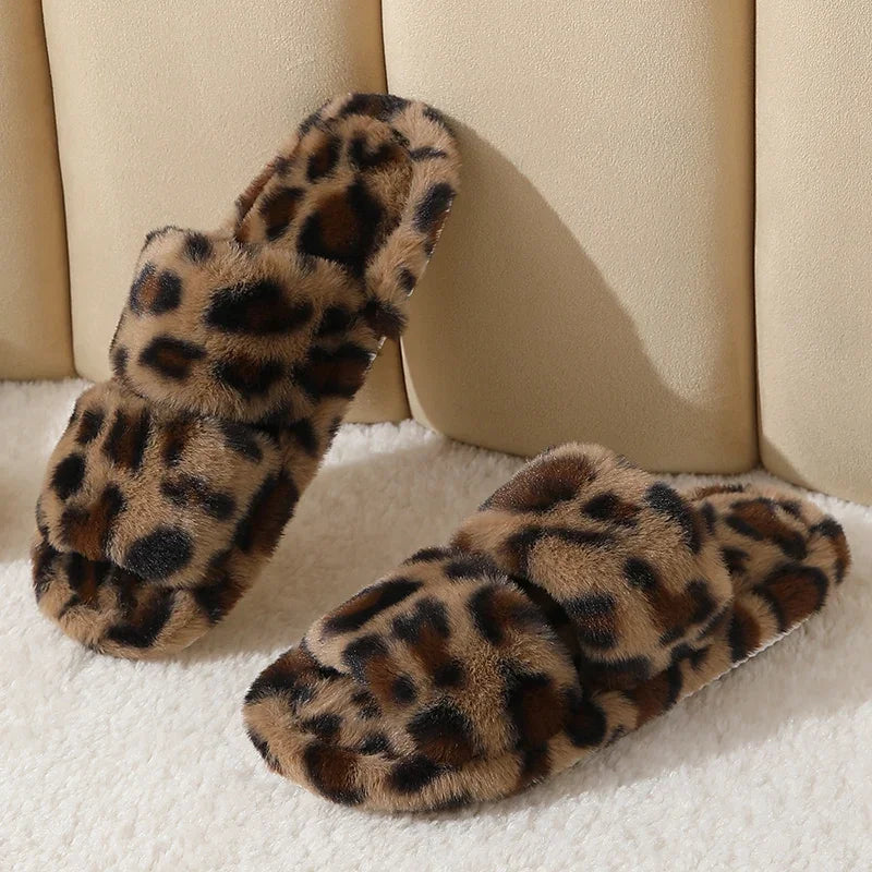 Erleben Sie gemütliche Eleganz mit unseren Plüsch-Hausschuhen im Leopardenmuster, die Ihnen stilvolle Wärme in Innenräumen bieten.