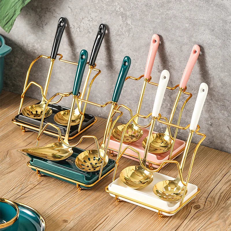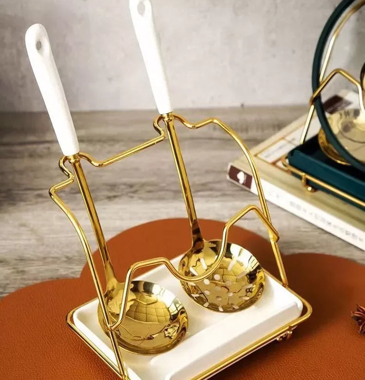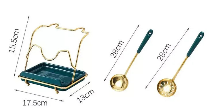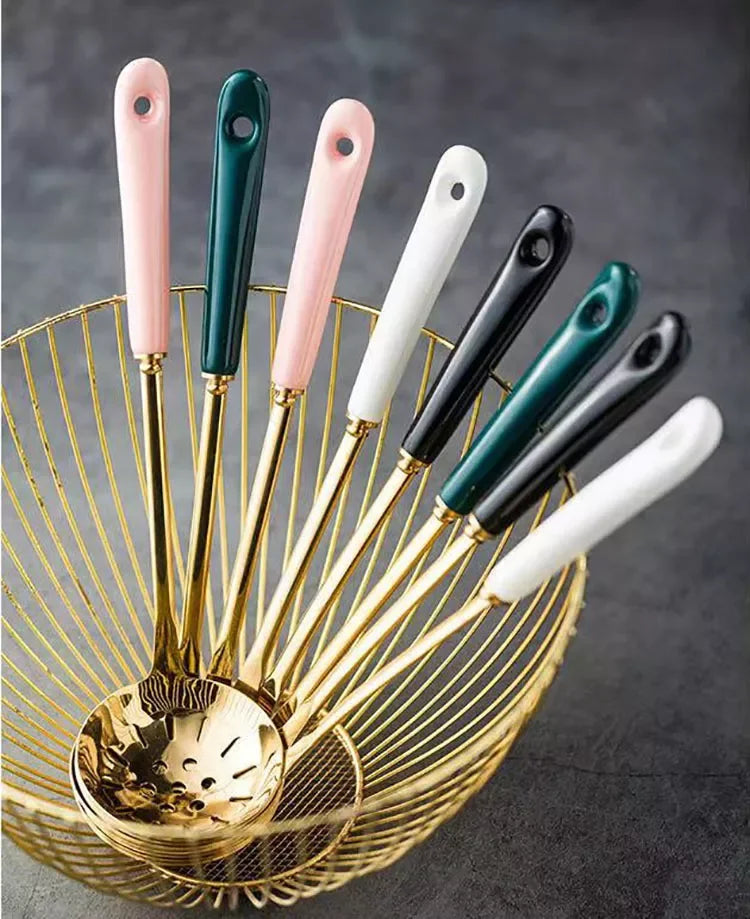 Produktname: Gold Edelstahl 304 Koreanischer Hot Pot Suppe Geschlitzter langer Griff Grosse Haushaltslöffelablage mit Deckelhalter