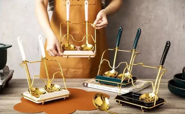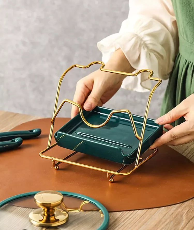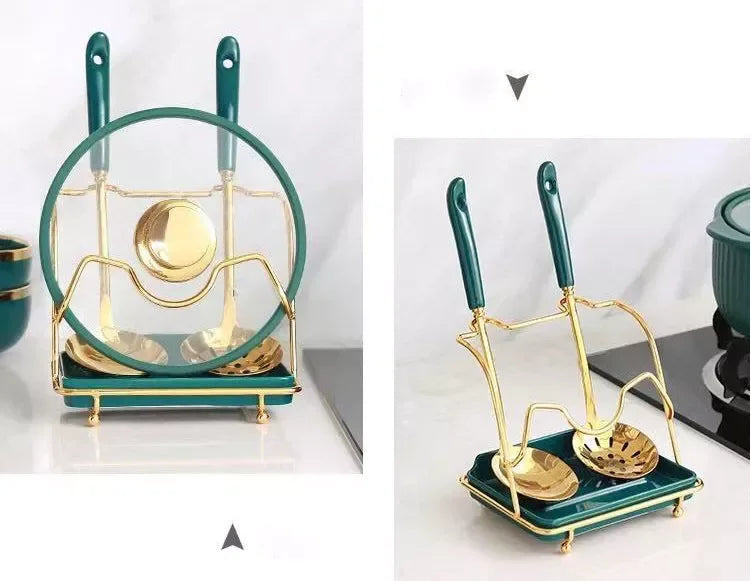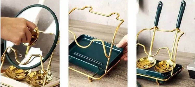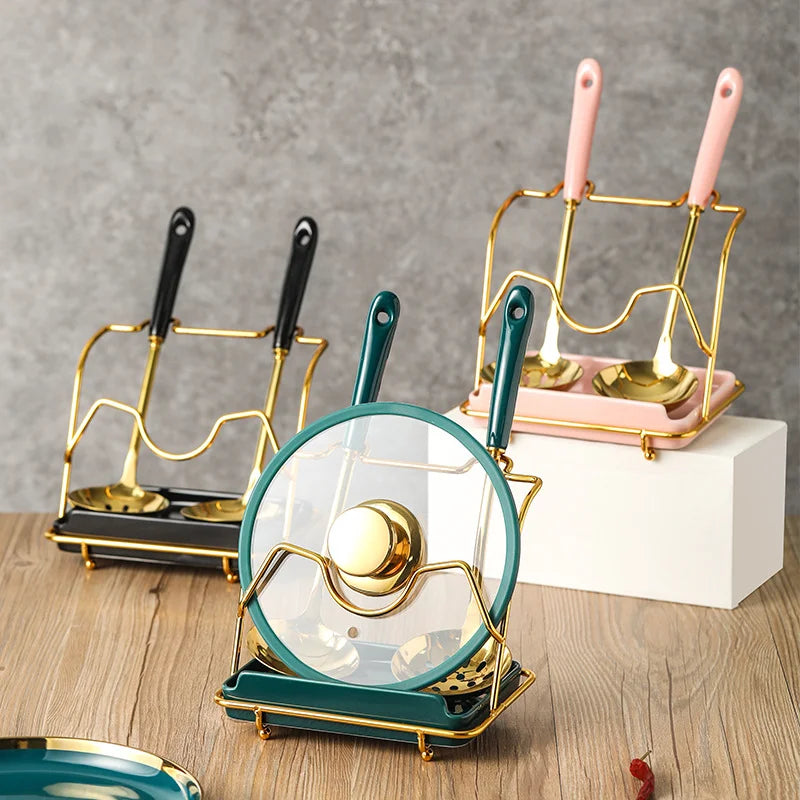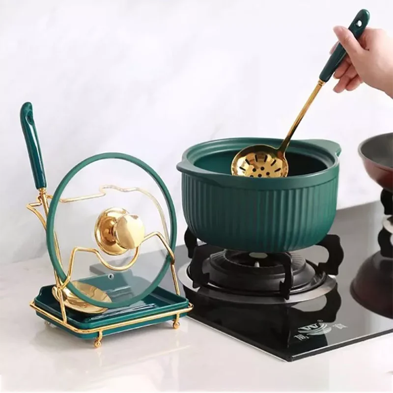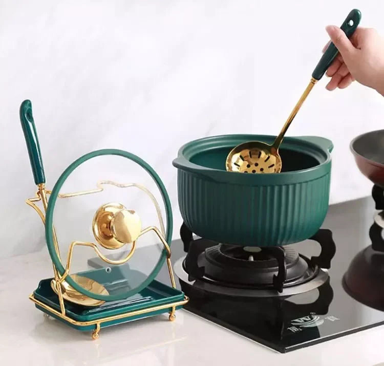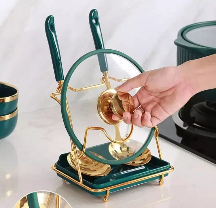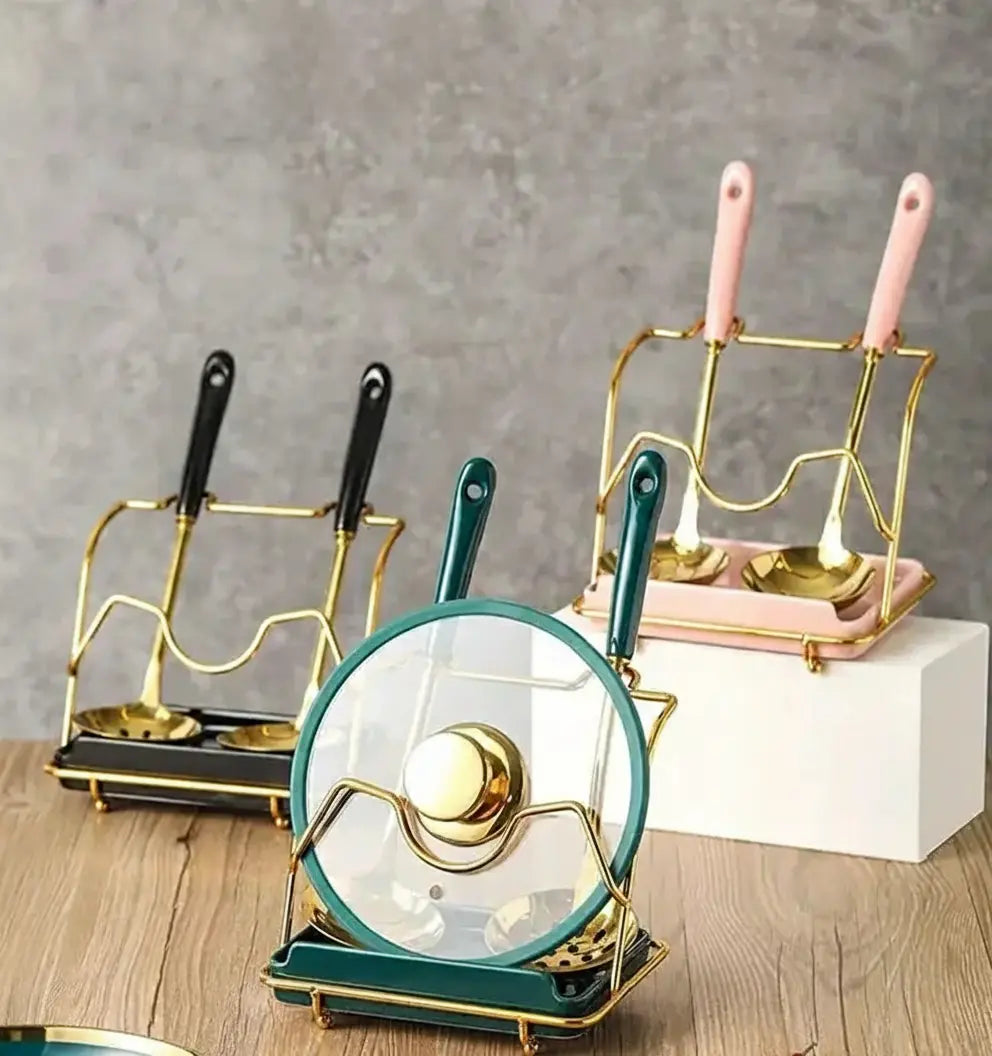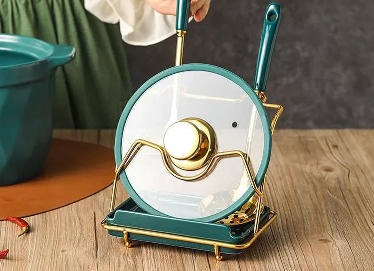 Erleben Sie mühelose Küchenorganisation mit dieser eleganten Löffelablage und Deckelhalter.