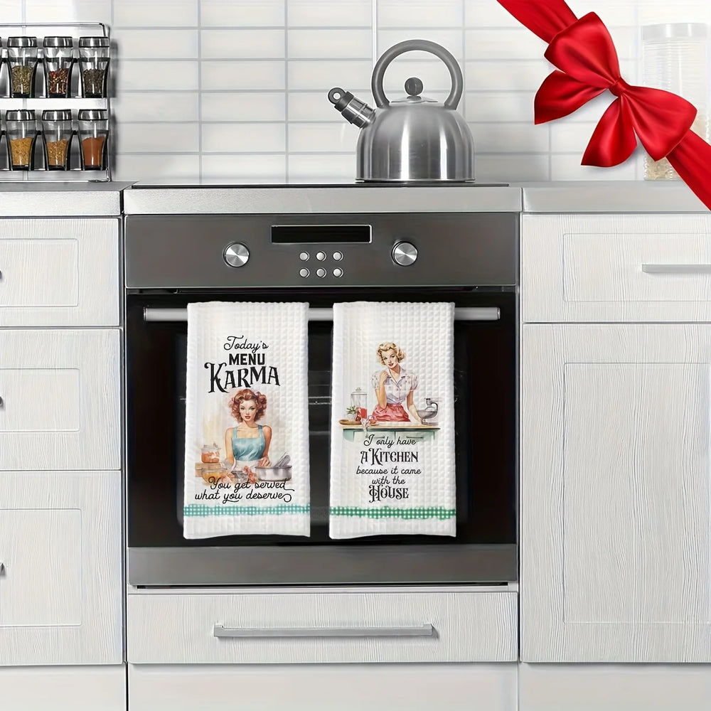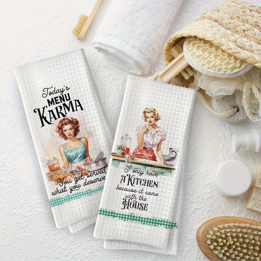 Bringen Sie Lachen und Vintage-Charme in Ihre Küche mit unserem Set aus 2 lustigen Vintage-Teetüchern. Perfekt, um jedem Kochbereich Persönlichkeit zu verleihen!