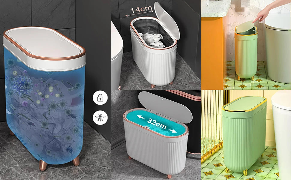 Ob in der Küche, im Badezimmer oder im Wohnbereich, dieser vielseitige Abfalleimer passt nahtlos in jeden Raum und verbessert sowohl Hygiene als auch Dekor.