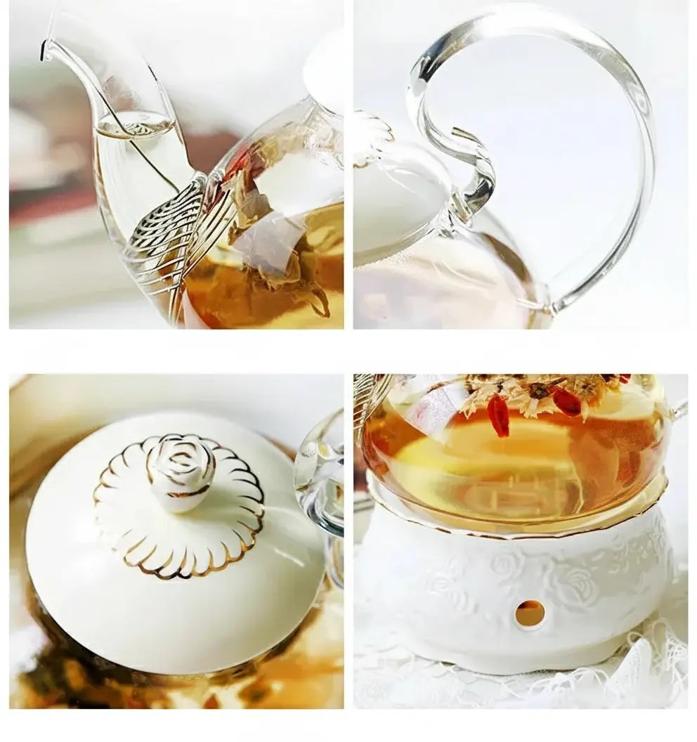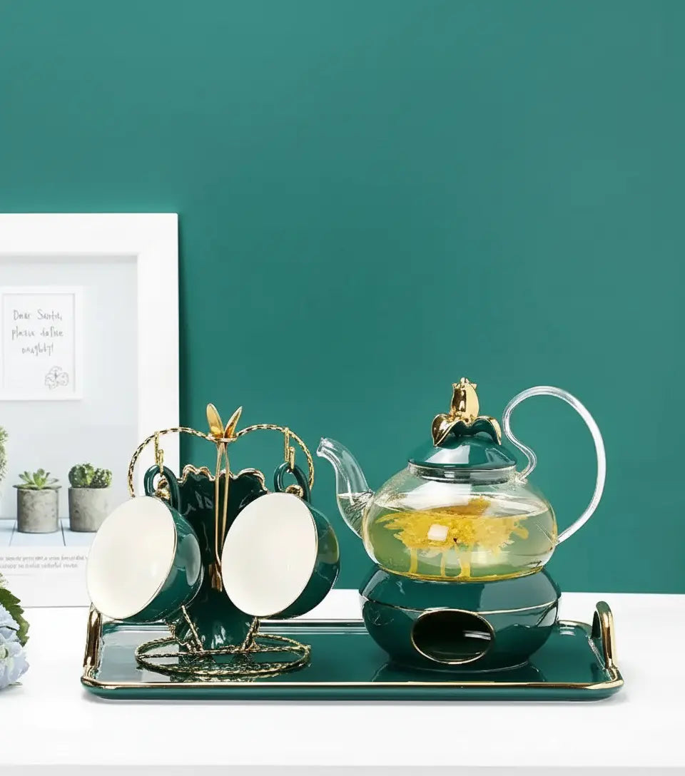 Bereichern Sie Ihre Teezeit mit diesem luxuriösen Glas-Teeset, das sowohl Eleganz als auch Funktionalität für eine perfekte Infusion bietet.