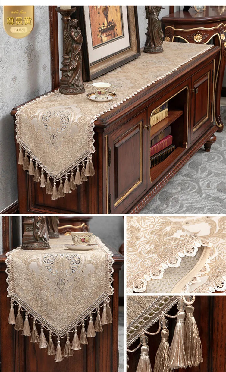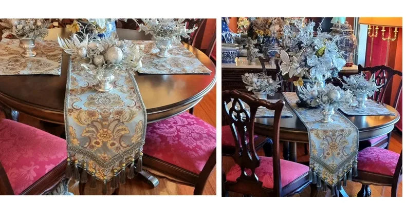 Verwandeln Sie Ihren Wohnraum in ein opulentes europäisches Refugium mit unserem Luxus-Jacquard-Tischläufer. Perfekt, um eine warme und romantische Atmosphäre zu schaffen.