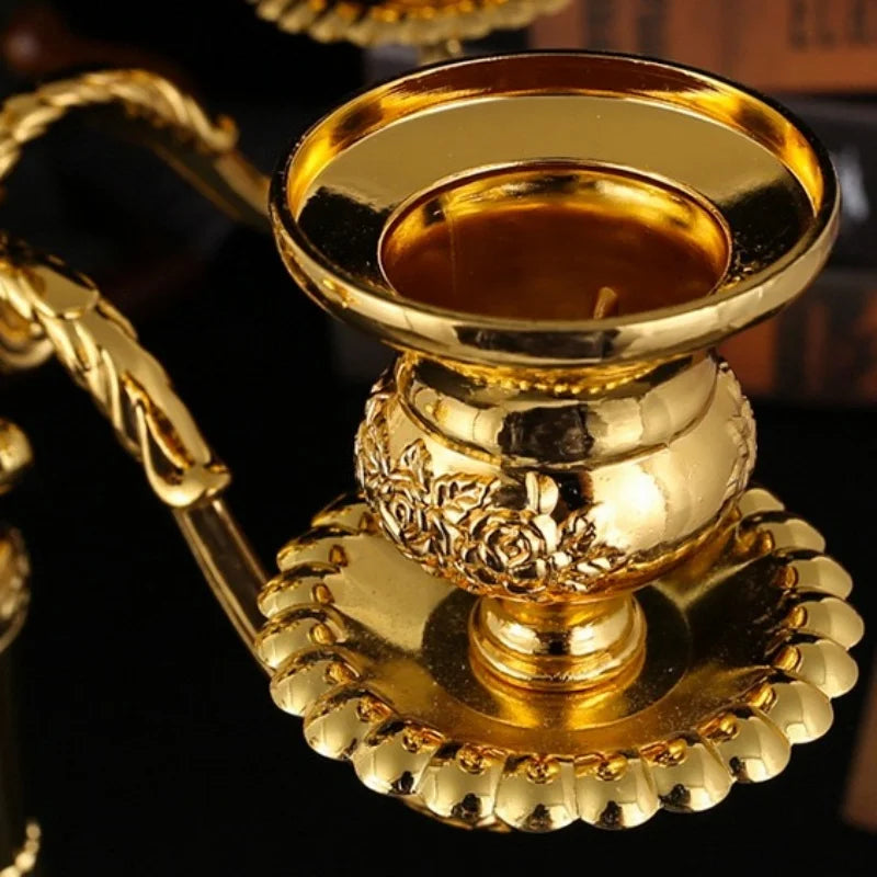 Mit unserem Luxus-Kerzenständer im europäischen Retro-Stil fügen Sie Ihrem Zuhause eine klassische Opulenz hinzu. Ideal für eine romantische Stimmung bei Hochzeiten, in Hotels oder im Wohnzimmer.