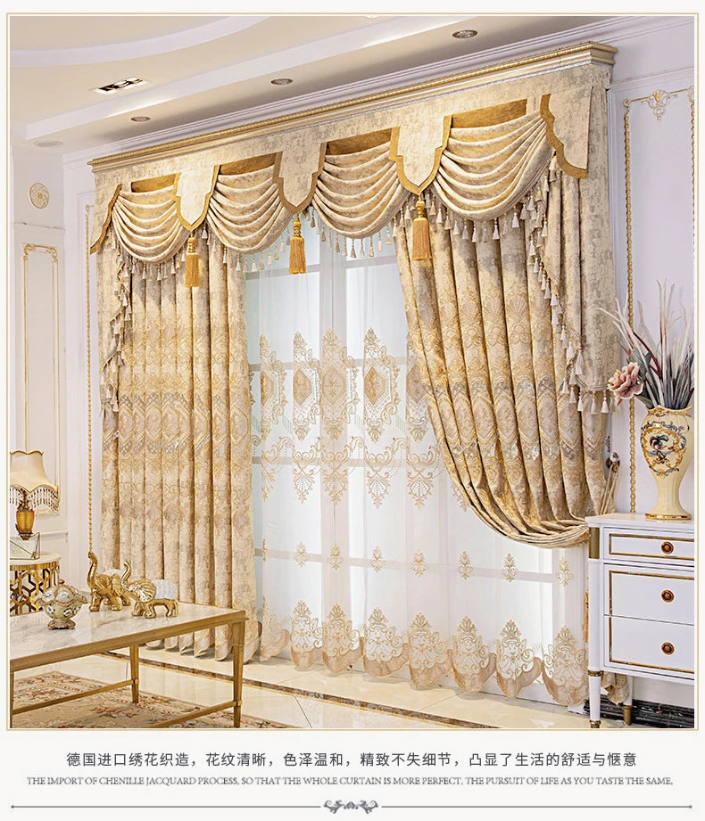 Verleihen Sie Ihrem Wohnraum mit unseren Luxusvorhängen aus europäischer Chenille-Stickerei einen eleganten und luxuriösen Touch. Diese Vorhänge sind für all jene gedacht, die die schönen Dinge im Leben schätzen, und bieten nicht nur eine atemberaubende Ästhetik, sondern auch praktische Funktionalität.