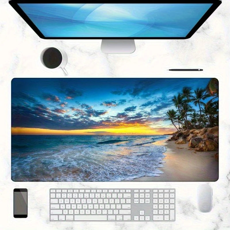 Flüchten Sie zu den ruhigen Vibes eines fernen Strandes mit unserem Mauspad, inspiriert von atemberaubenden Sonnenuntergängen und sanften Palmen. Perfekt, um Ihrem Arbeitsplatz eine Prise Gelassenheit hinzuzufügen.