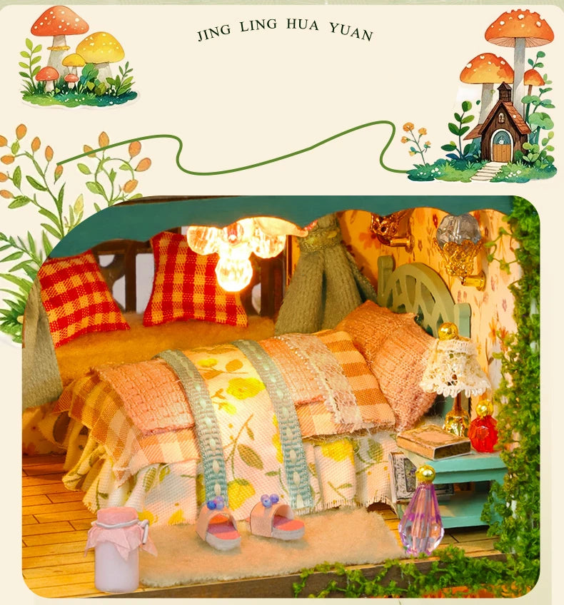 Kreieren Sie eine magische Miniaturwelt mit diesem Puppenhaus, das Sie einlädt, Ruhe und Kreativität zu erleben. Dieses Kit stammt aus Festlandchina und bietet einen handgemachten Charme, der jedem Interieur eine warme Note verleiht.
