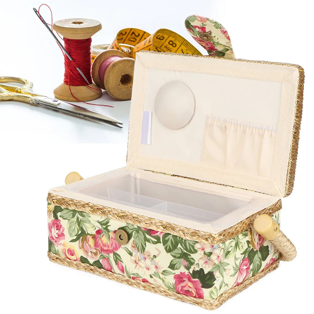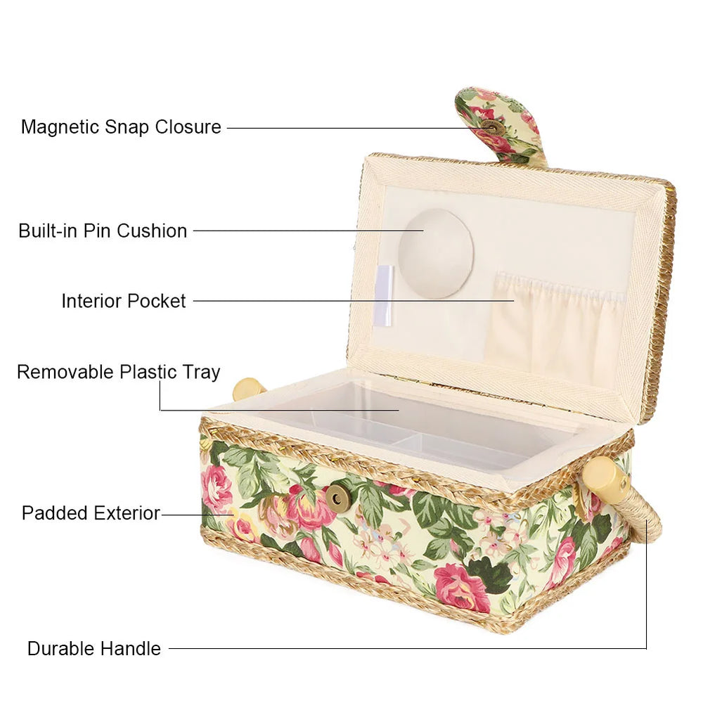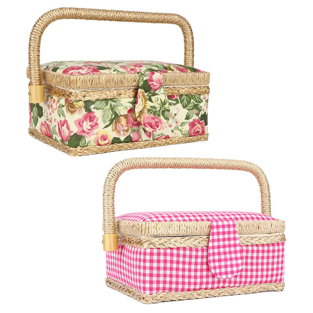 Dieser Nähkorb ist perfekt für Stickerinnen und Nähbegeisterte und bietet eine Vielzahl von Anwendungsmöglichkeiten, vom Aufbewahren von Fadenspulen bis zu Knöpfen und Bändern. Sein stilvolles und haltbares Design sorgt dafür, dass Ihre Utensilien organisiert und leicht zugänglich sind.