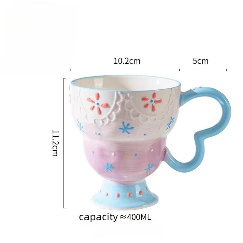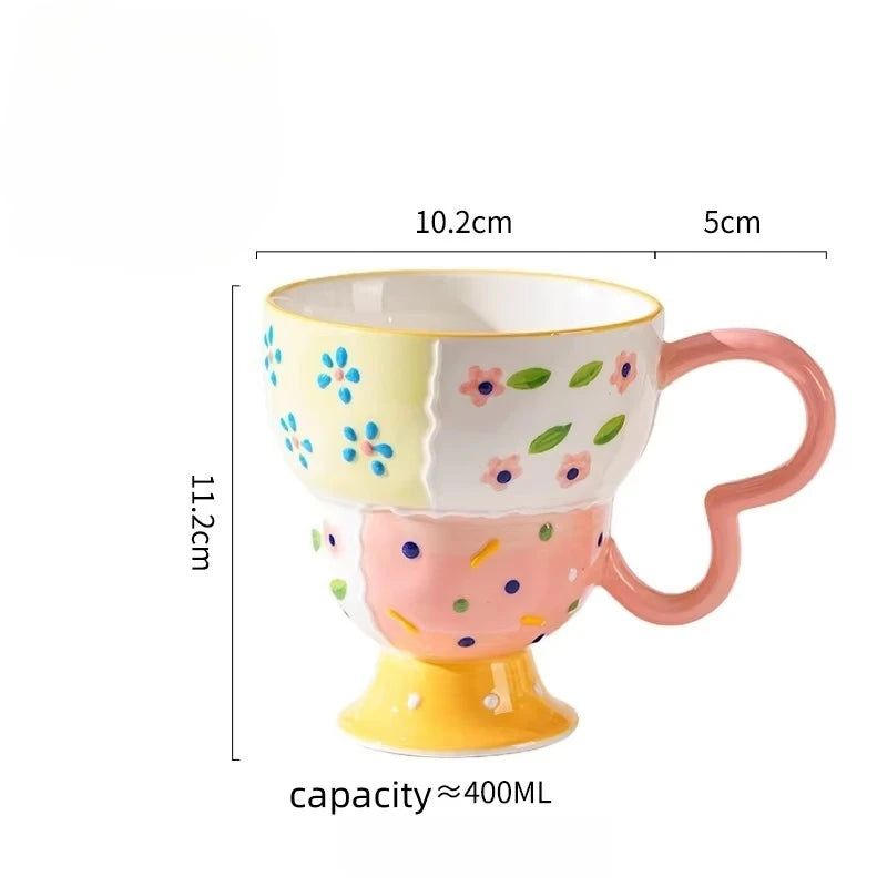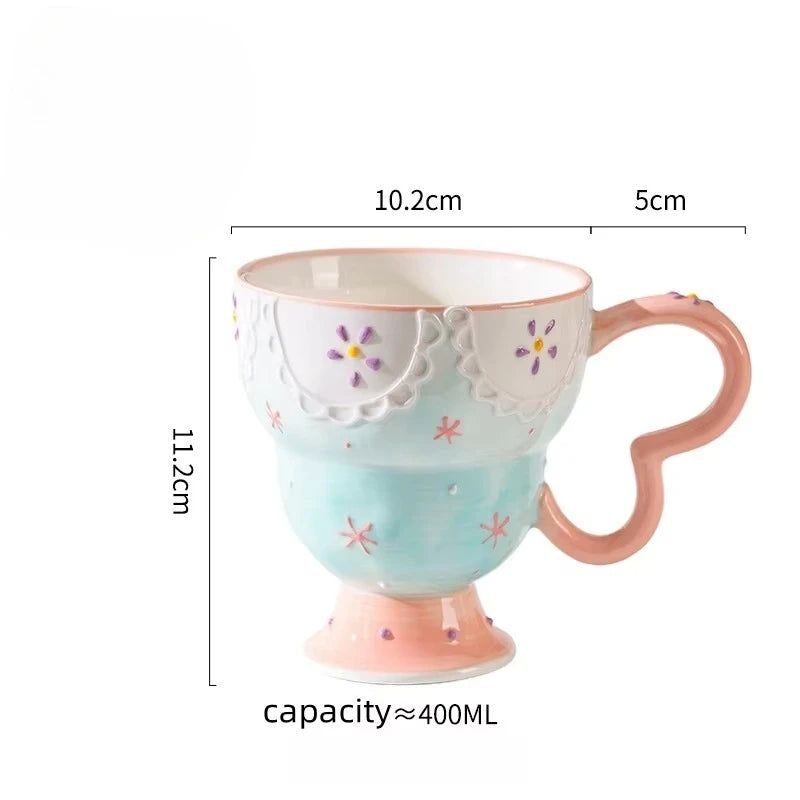 Beschreibung1. Cartoon süsse Serien Tassen, eleganter und einzigartiger Form, handbemalte Reliefglasur-Handwerkskunst, langlebig und farbecht, frische handbemalte Muster, verwenden Sie Blumen, um den schönen Morgen zu wecken. Lassen Sie den Esstisch und den Schreibtisch mehr Romantik hinzufügen.2. Handgefertigte Keramikprodukte, glatte Glasur, zarte Berührung, leicht zu reinigen. Es gibt kleine Blasen oder schwarze Flecken in einigen Teilen, die das Aussehen und die Verwendung nicht beeinträchtigen.3. Anwendungsbereich: Desinfektionsschrank, Geschirrspüler, Mikrowelle, Ofen.Material: KeramikGrösse: wie auf dem Bild gezeigtJa, sie ist mikrowellengeeignet.