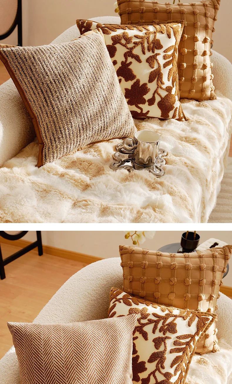 Diese Kissenbezüge sind sorgfältig gewebt und bieten eine quadratische Form ohne Kern, um sich mühelos in verschiedene Interieurthemen einzufügen.