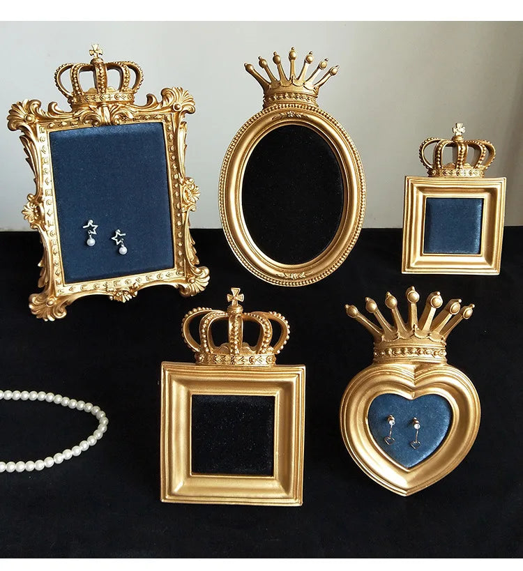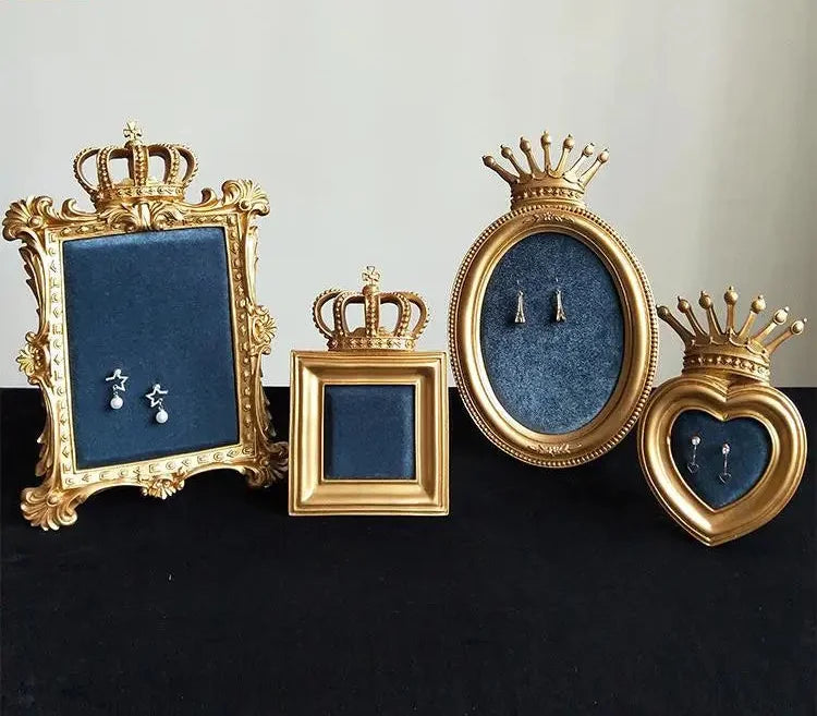 Verleihen Sie Ihrer Schmuckpräsentation einen Hauch von vintage Raffinesse mit unserem rahmen-geformten Ohrringständer. Das luxuriöse Samtmaterial bietet eine elegante Präsentation.
