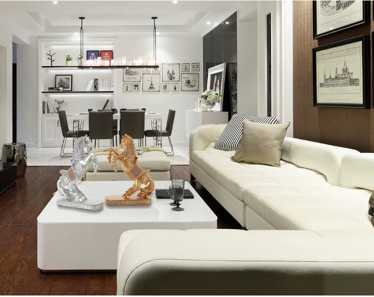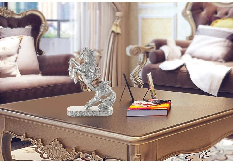 Entdecken Sie die Faszination moderner Kunst mit unserer Pferdeskulptur aus Harz, ein auffälliges Element für Ihr Zuhause oder Büro.