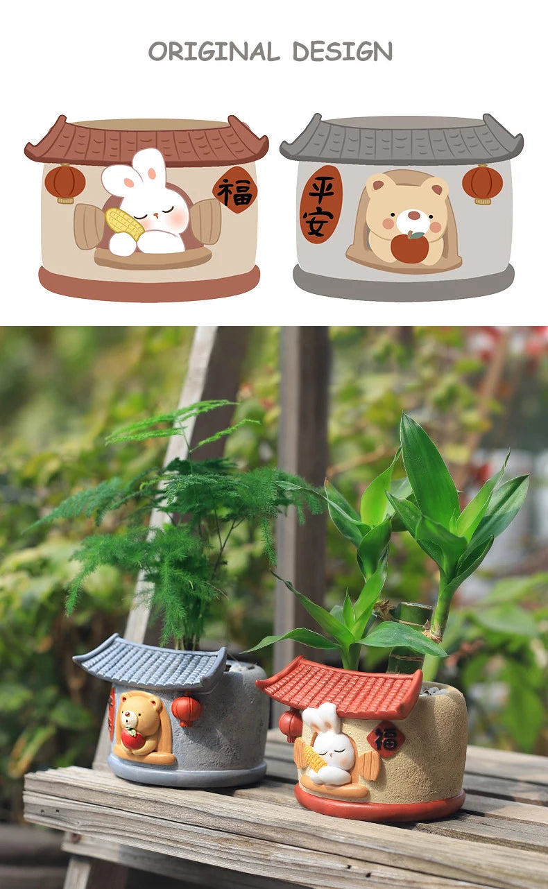 Unsere handbemalten Harz-Pflanzgefässe sind die perfekten Desktop-Dekorationen, die mit künstlichen Blumen kombiniert werden können. Bitte beachten Sie, dass die abgebildeten Pflanzen und Ornamente nicht enthalten sind.