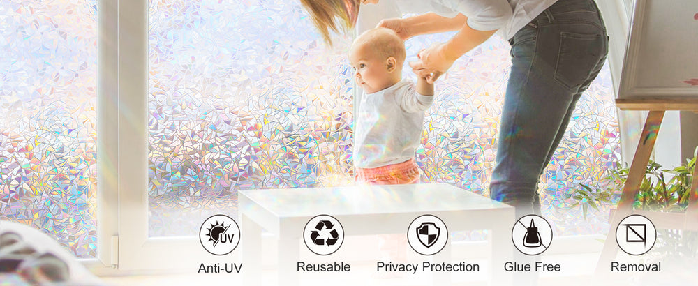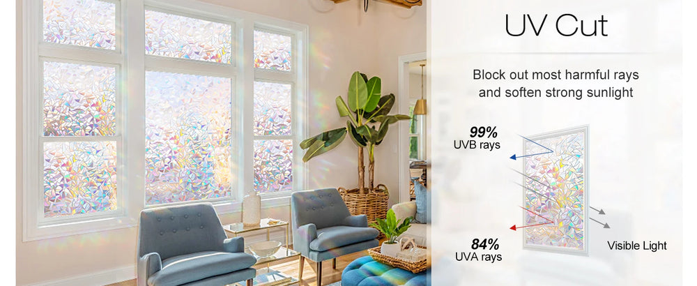 Bringen Sie diese Folie in Ihrem Wohnzimmer, Schlafzimmer oder Büro an, um ein bezauberndes visuelles Fest zu geniessen, ohne auf natürliches Licht verzichten zu müssen. Das 3D-Design erzeugt prismatische Effekte und verwandelt gewöhnliches Sonnenlicht in ein Spektrum reicher Farben. Geniessen Sie das weichere Licht und die lebendige Atmosphäre, die diese Fensterfolie bietet. Es ist die ideale Lösung für Mieter oder alle, die ohne dauerhafte Veränderungen einen Hauch von Kreativität hinzufügen möchten.