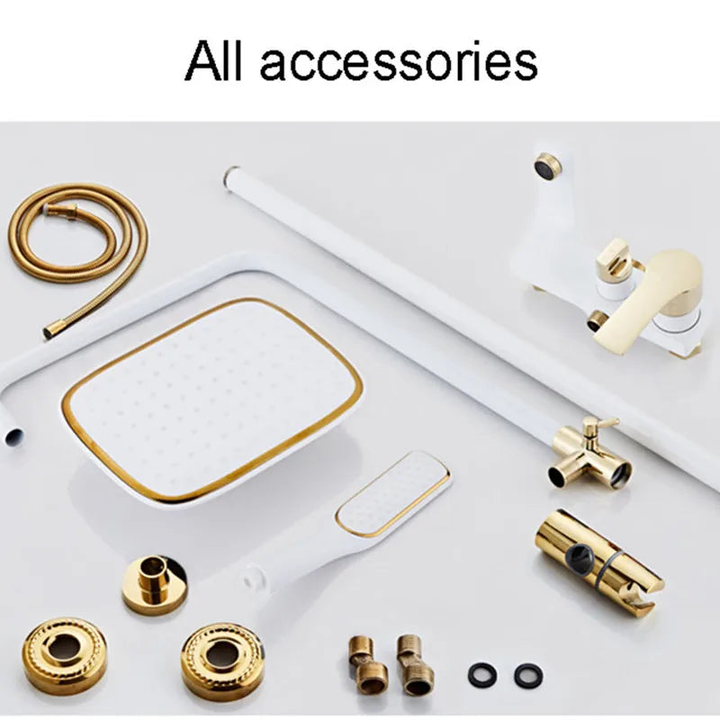 Erleben Sie ultimativen Duschluxus mit unserem Regenbrausesystem in elegantem Weissgold. Entworfen, um den Stil und die Funktionalität Ihres Badezimmers zu erhöhen, verspricht dieses System ein Spa-ähnliches Erlebnis jeden Tag.