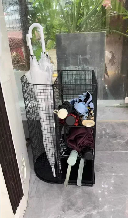 Perfekt für Hotels, Büros und Hauseingänge, kombiniert dieser Schirmhalter Praktikabilität mit modernem Design. Seine schlanke Struktur ergänzt jeden Einrichtungsstil und bietet eine organisierte Lösung für nasse Wetterausrüstung.