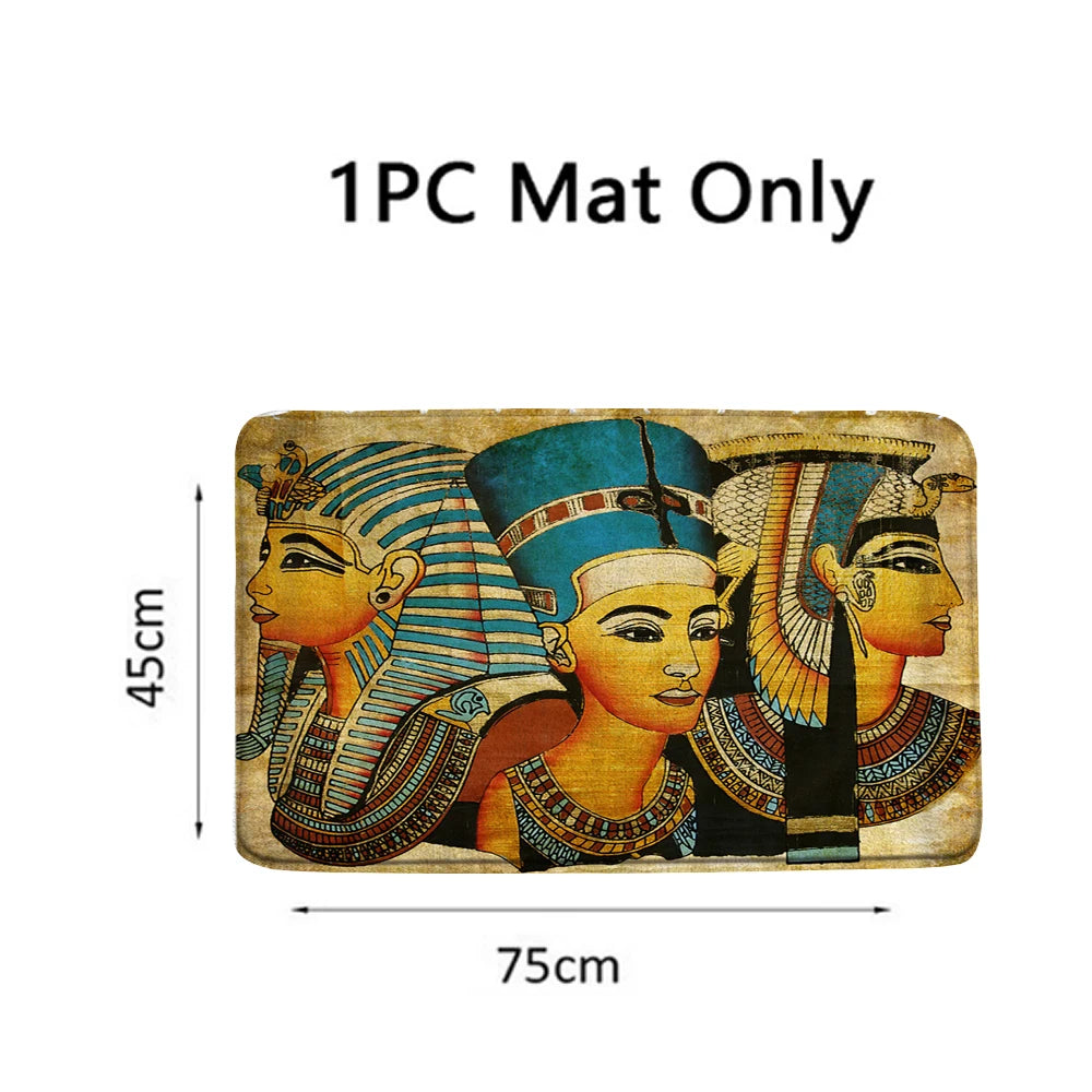 Verleihen Sie Ihrem Badezimmer einen königlichen Touch mit diesem atemberaubenden ägyptischen Duschvorhang und Teppichset. • Umweltfreundliches Polyester-Material • Rutschfester Badteppich inklusive • Individualisierbare Sets erhältlich • Einfache Montage mit enthaltenen Haken