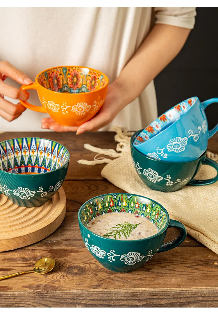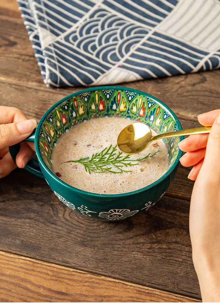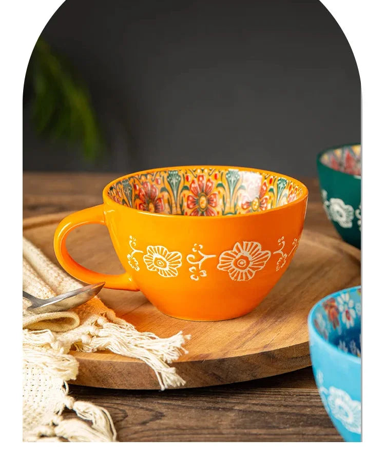 Unser Retro-Keramikbecher vereint Vintage-Charme mit moderner Funktionalität. Mit 400ml grosser Kapazität eignet er sich perfekt für Kaffee, Milch oder Haferflocken.