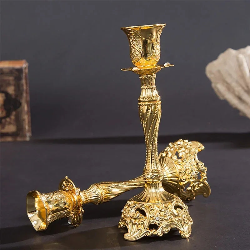 Verleihen Sie Ihrem Zuhause mit den eleganten Kerzenhaltern im europäischen Stil aus langlebiger Zinklegierung einen raffinierten Touch.