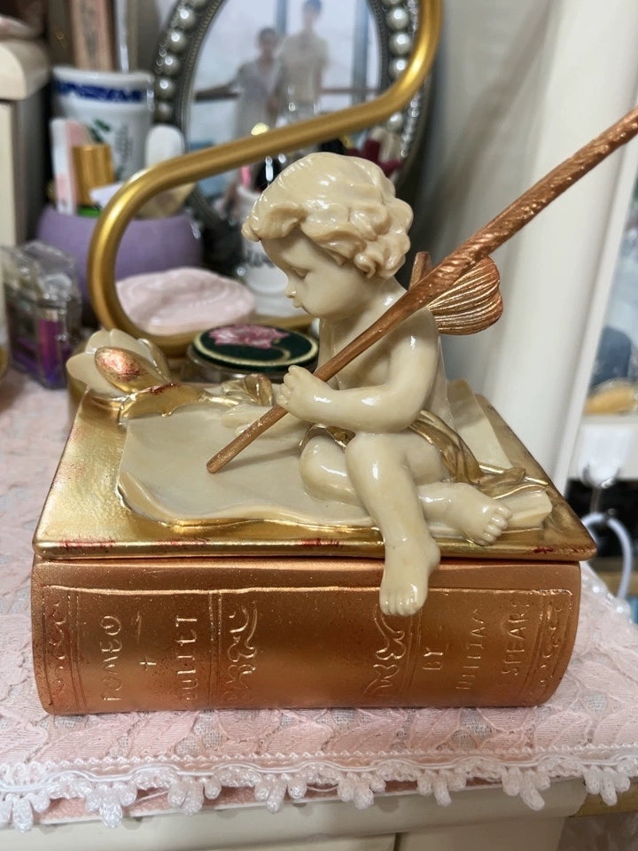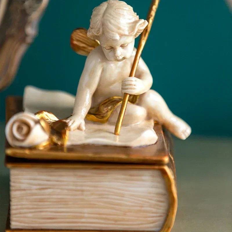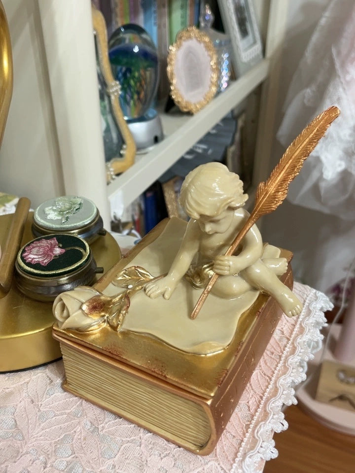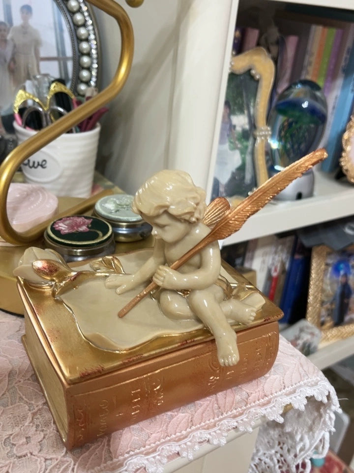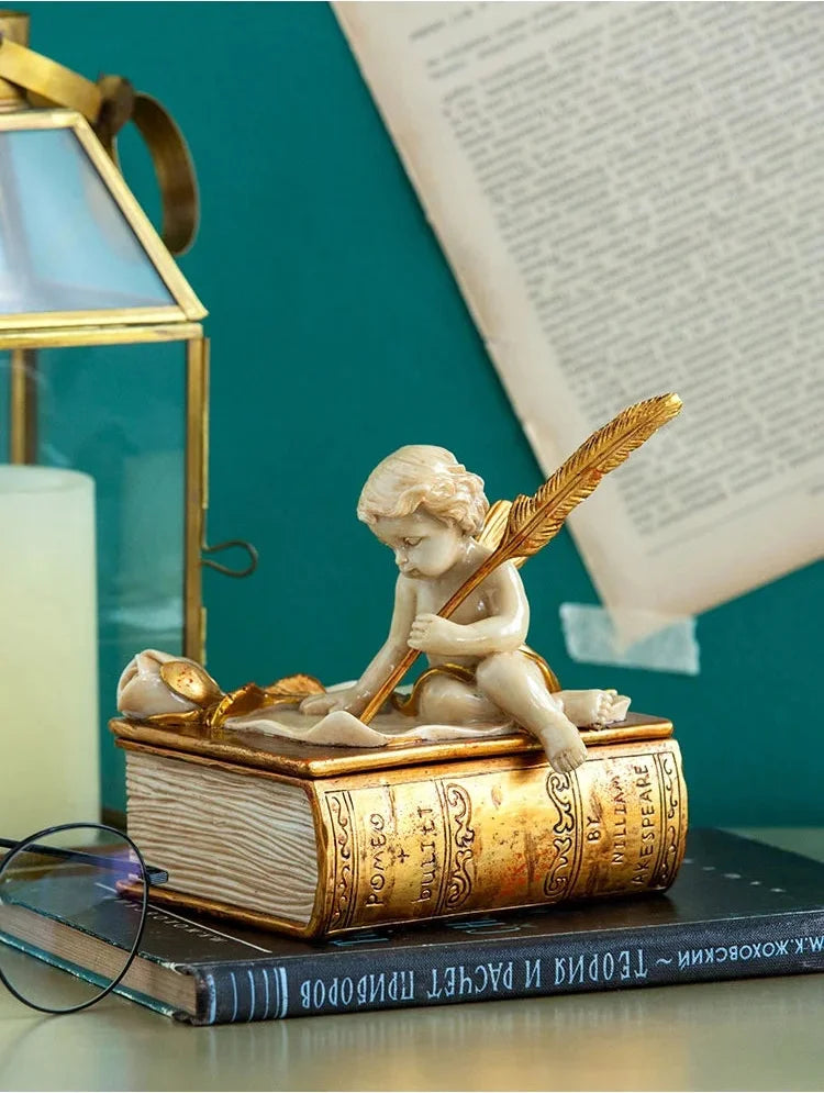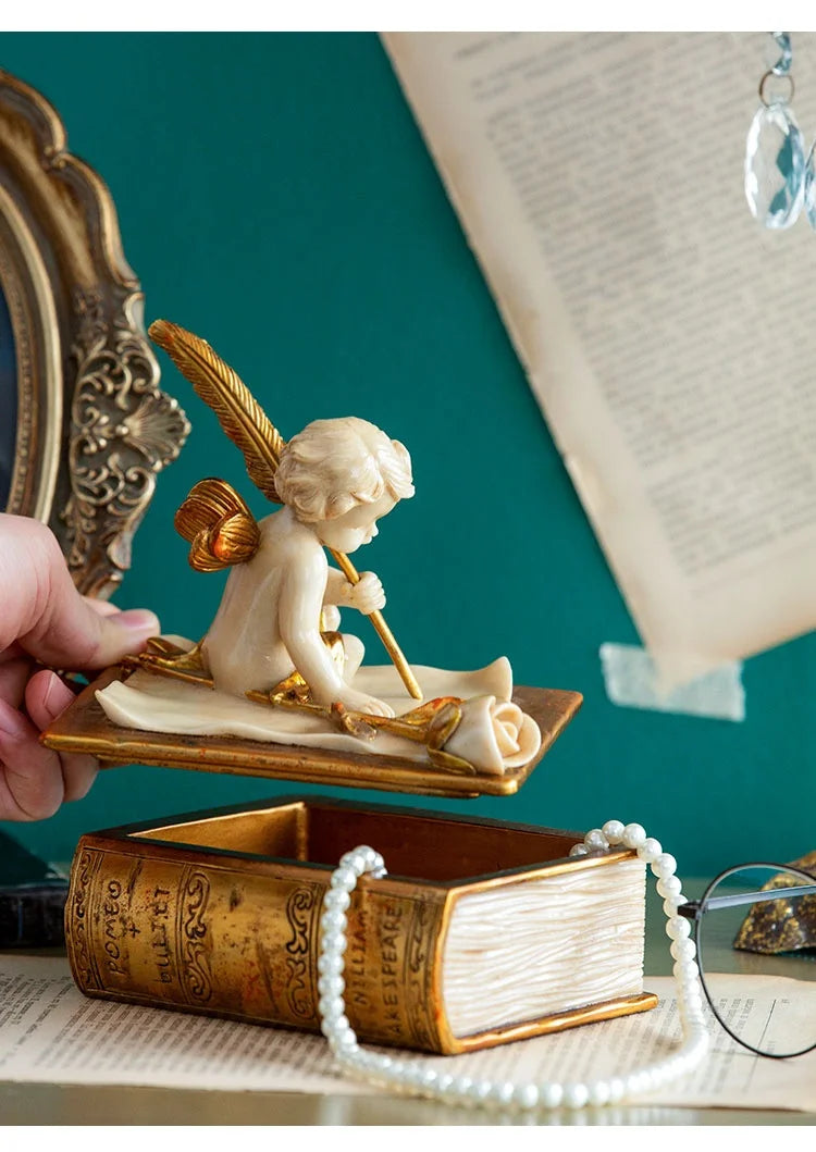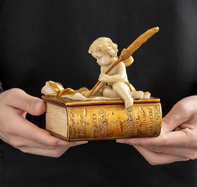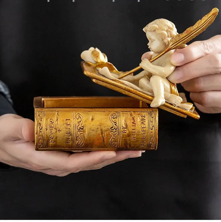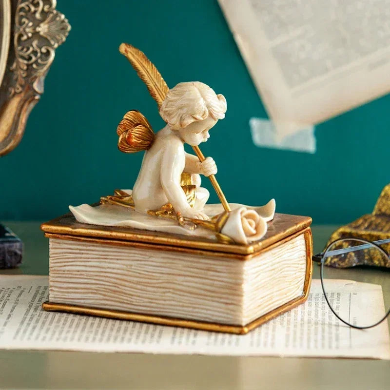 Die Retro-Schmuckaufbewahrung im europäischen Stil spiegelt Ihren eleganten Geschmack mit ihren handgefertigten Harzmaterialien und dem engelhaften Design wider. Der zeitlose Look wird mit moderner Funktionalität kombiniert und bietet Platz für Ihre wertvollsten Gegenstände.