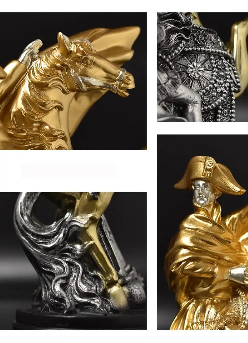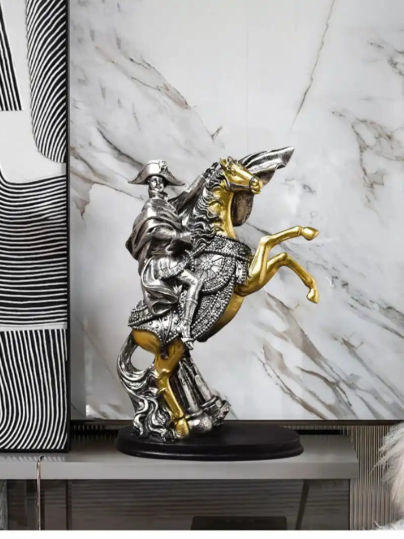 Verwandeln Sie Ihr Umfeld in eine Oase der Raffinesse mit dieser detaillierten Ritterfigur, die den Geist von Napoléon Bonaparte verkörpert. Gefertigt aus hochwertigem Harz, machen seine detaillierten Ausführungen es zu einem faszinierenden Dekorationsstück für jeden Raum.