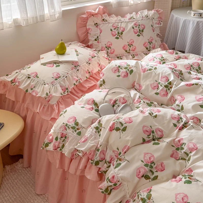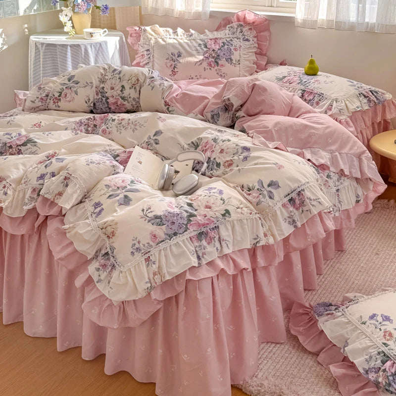 Erleben Sie das ultimative Schlafzimmerluxus mit unserem romantischen Blumenmuster-Koreanischen Baumwoll-Bettwäscheset. Für Komfort und Stil entworfen, ist dieses Set ein Muss für jedes Zuhause.