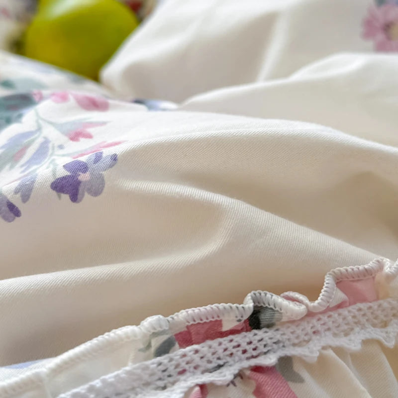 Geniessen Sie den luxuriösen Komfort unseres romantischen Blumenmuster-Koreanischen Baumwoll-Bettwäschesets, das Eleganz und Wärme in Ihr Schlafzimmer bringt.