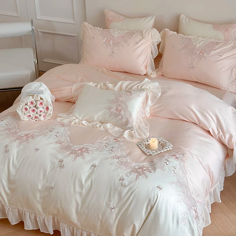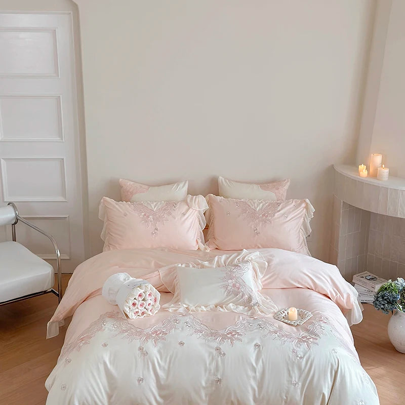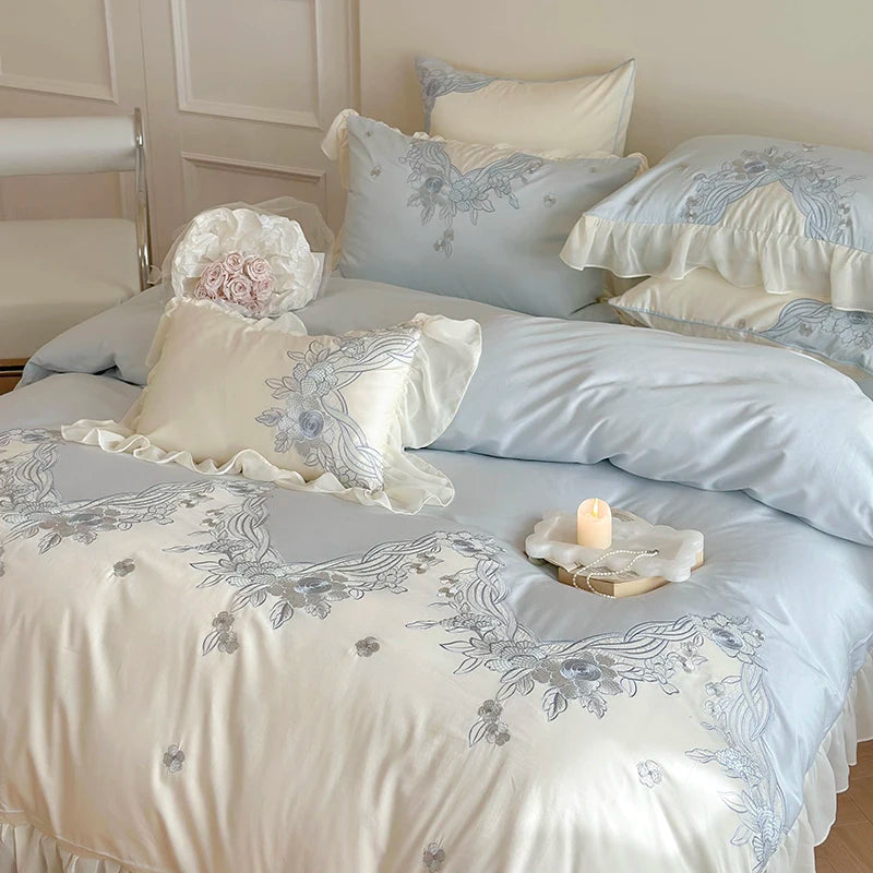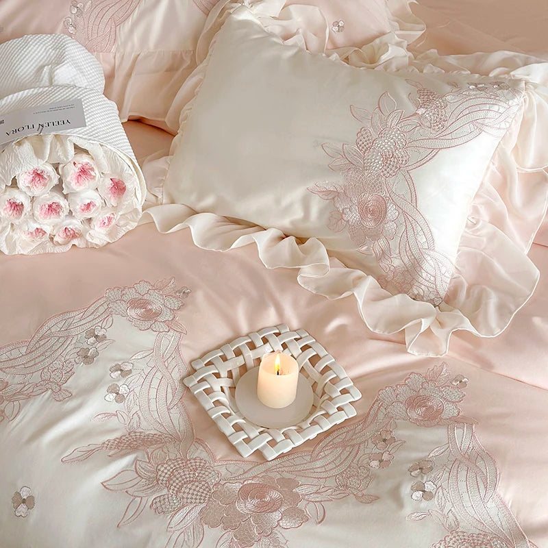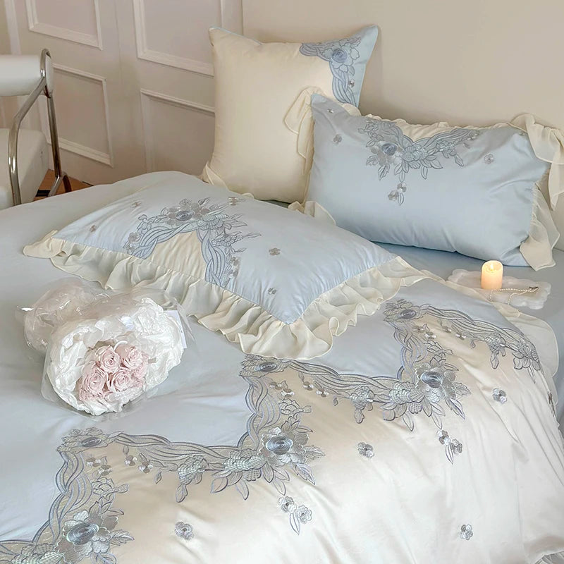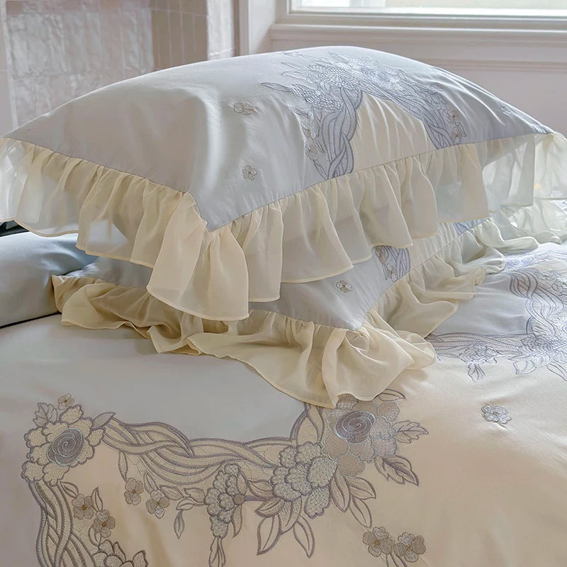 Verwandeln Sie Ihr Schlafzimmer in ein ruhiges Refugium mit unserem French Romantic Lace Ruffles Bettwäsche-Set aus luxuriöser ägyptischer Baumwolle. Geniessen Sie den sanften Mix aus Komfort und Stil, der jede Nacht in ein traumhaftes Erlebnis verwandelt.