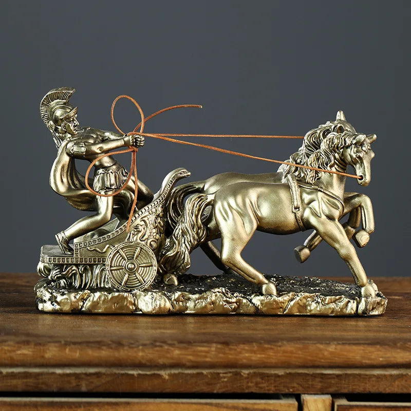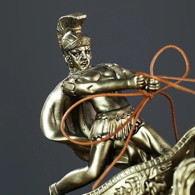 Verwandle dein Wohnambiente in eine Arena voller Anmut und Stärke mit unserer Statue des römischen Zenturio-Kriegers zu Pferd mit antiker Bronze-Optik.