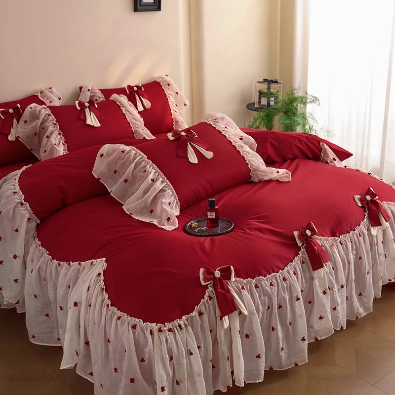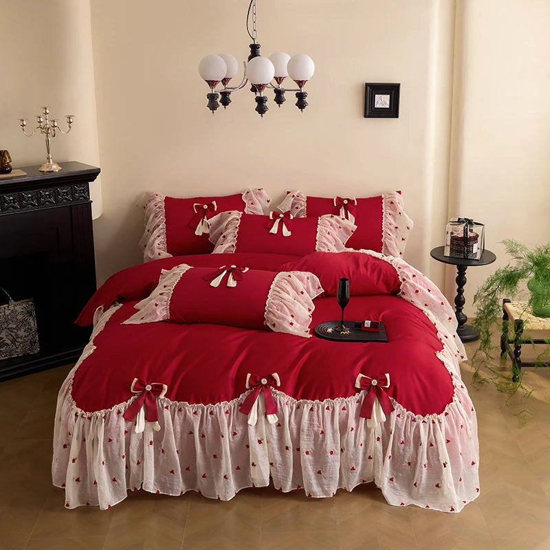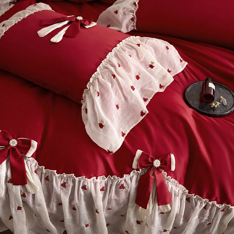 Verwandeln Sie Ihr Schlafzimmer in ein königliches Refugium mit unserem roten Luxus-Bettwäsche-Set im Prinzessinnenstil. Erleben Sie unvergleichlichen Komfort und Eleganz.
