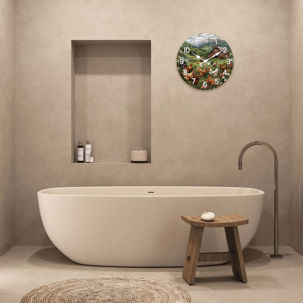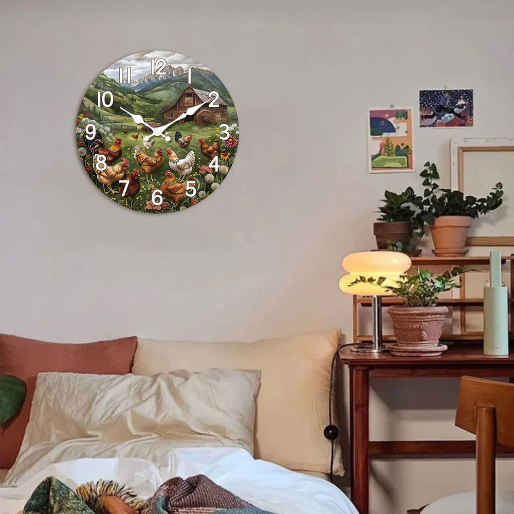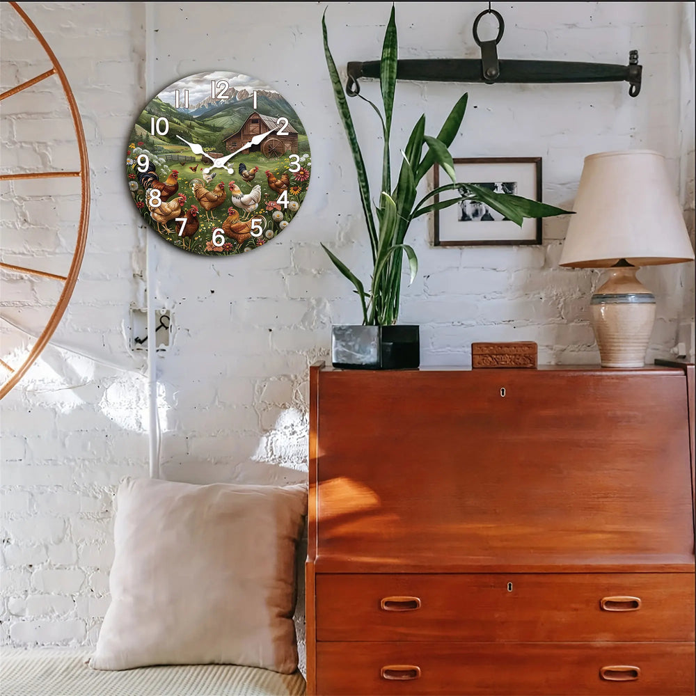 Geniessen Sie die Ruhe der Natur mit unserer holzbetonten Bauernhaus-Wanduhr im Bergdesign. Perfekt, um Ihrem Wohnzimmer einen rustikalen Charme zu verleihen.