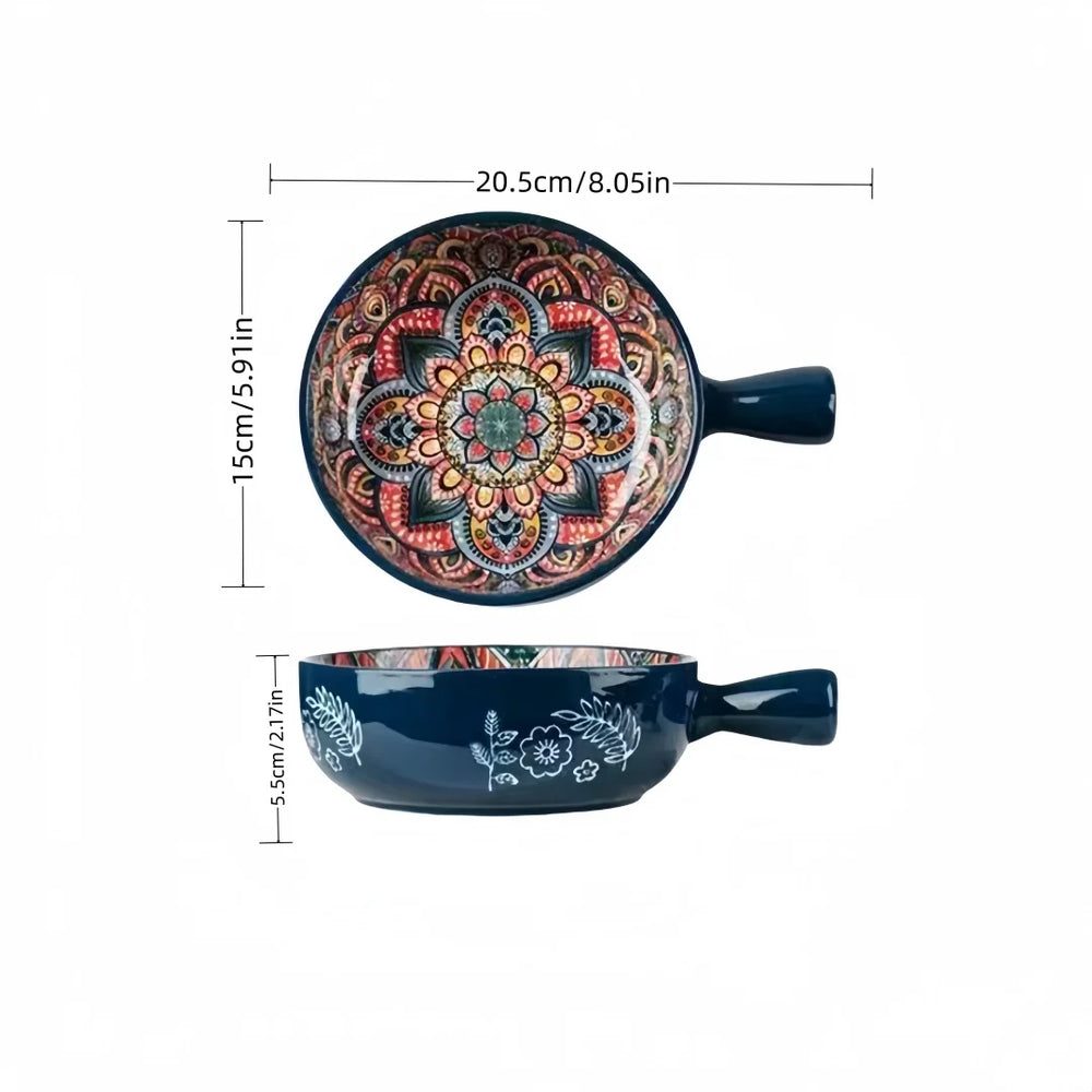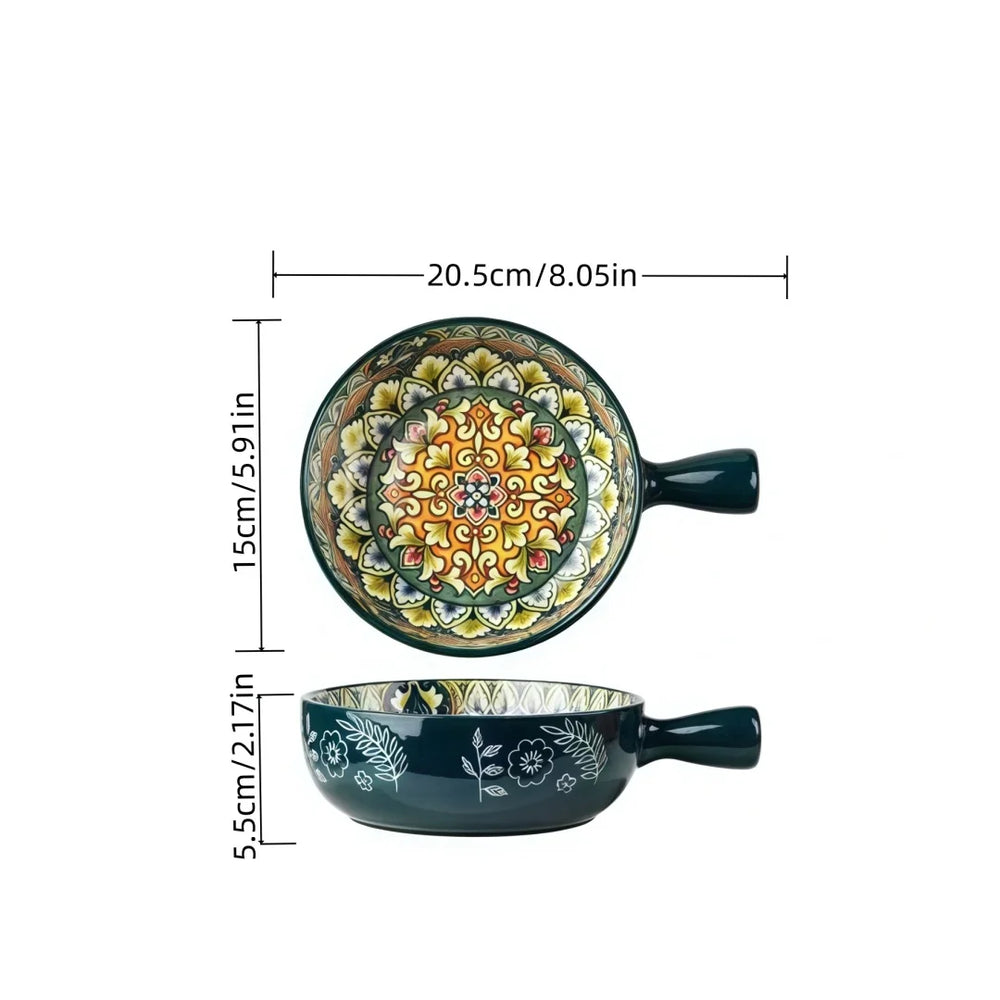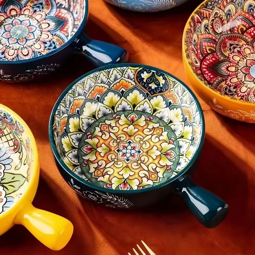 Unsere handbemalte Keramik-Salatschüssel strahlt Charme und Funktionalität aus und wertet jedes Mahl auf.