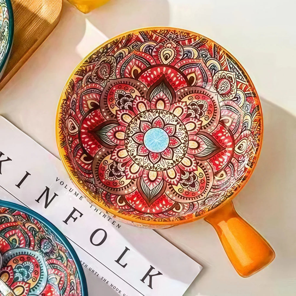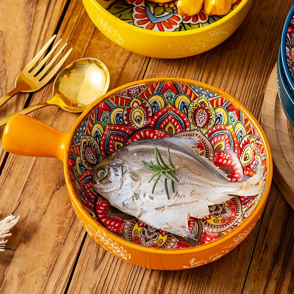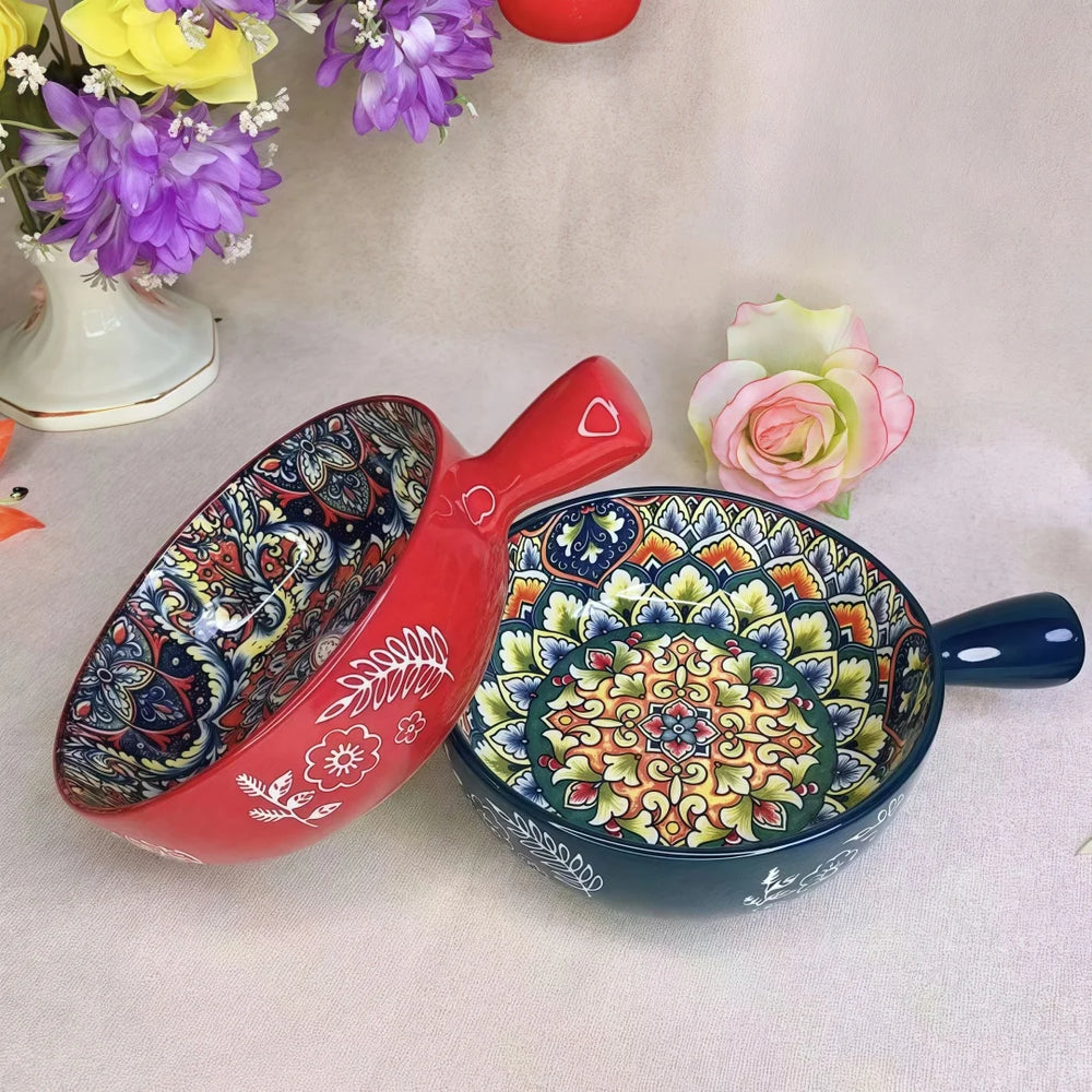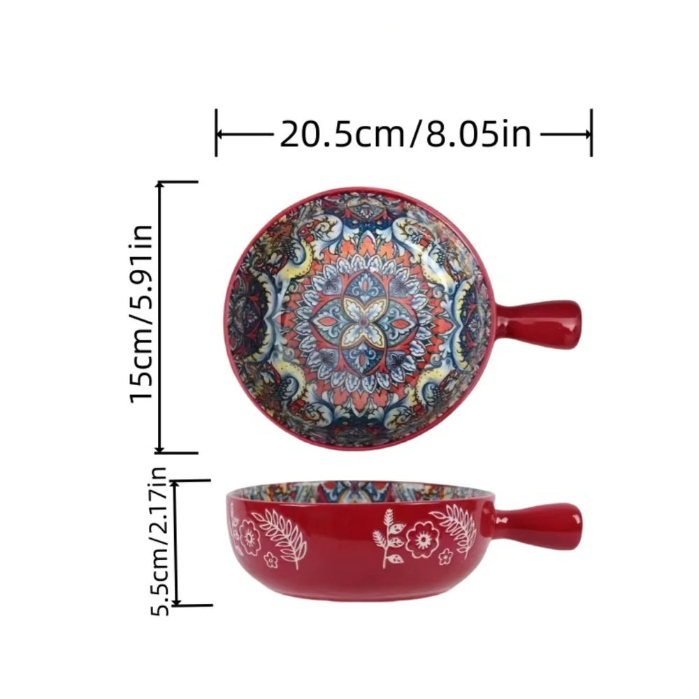 Unsere handbemalte Keramik-Salatschüssel strahlt Charme und Funktionalität aus und wertet jedes Mahl auf.