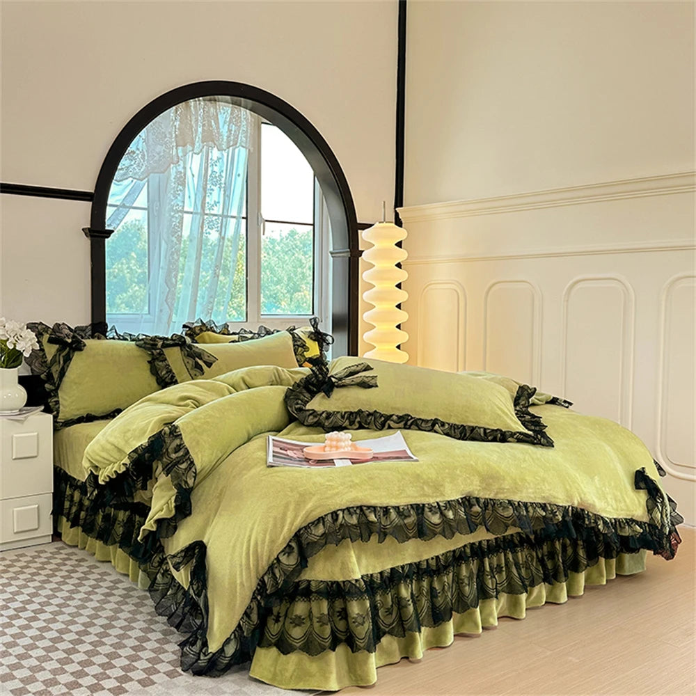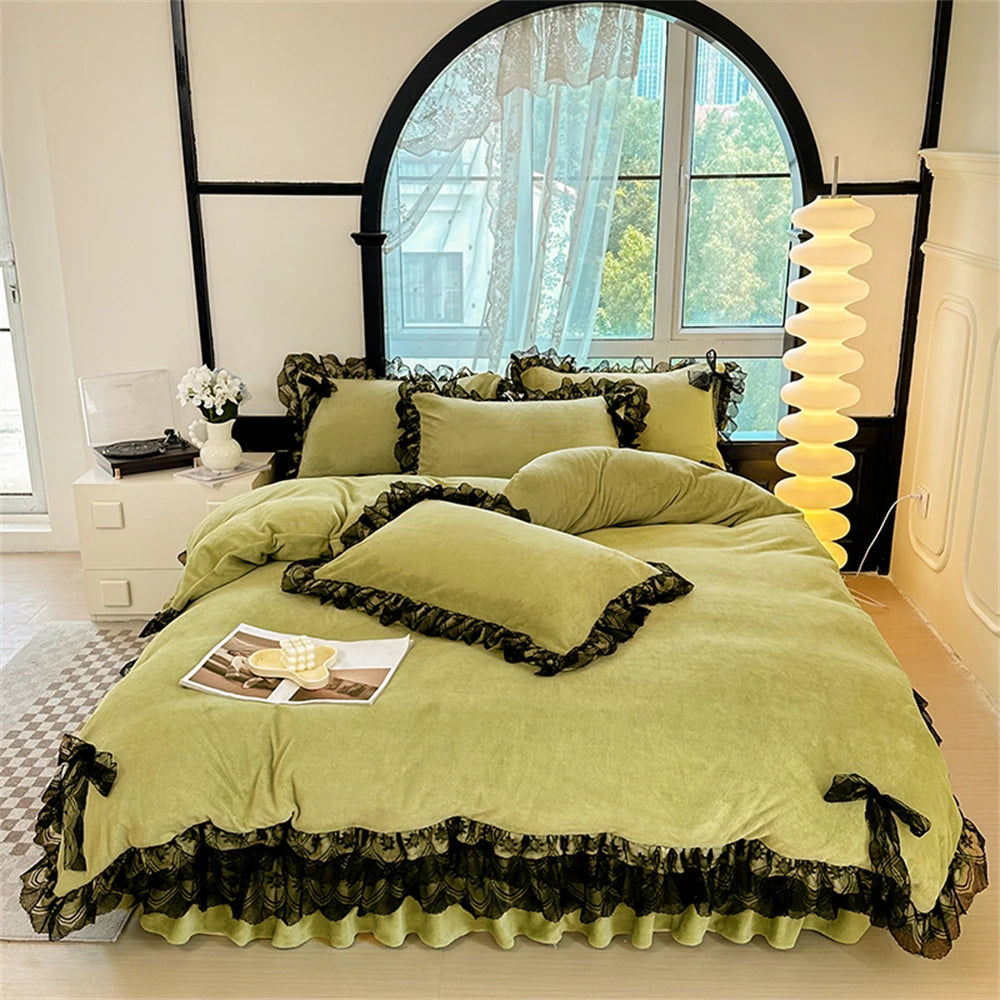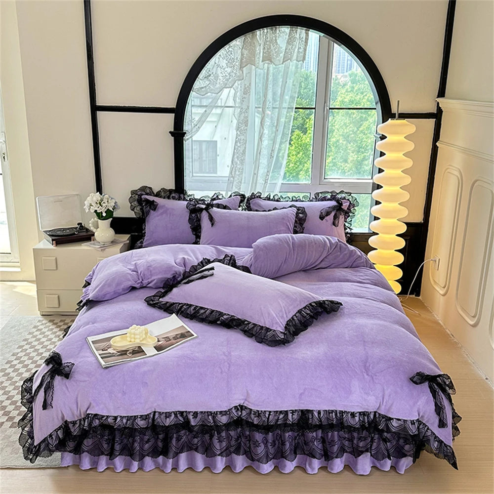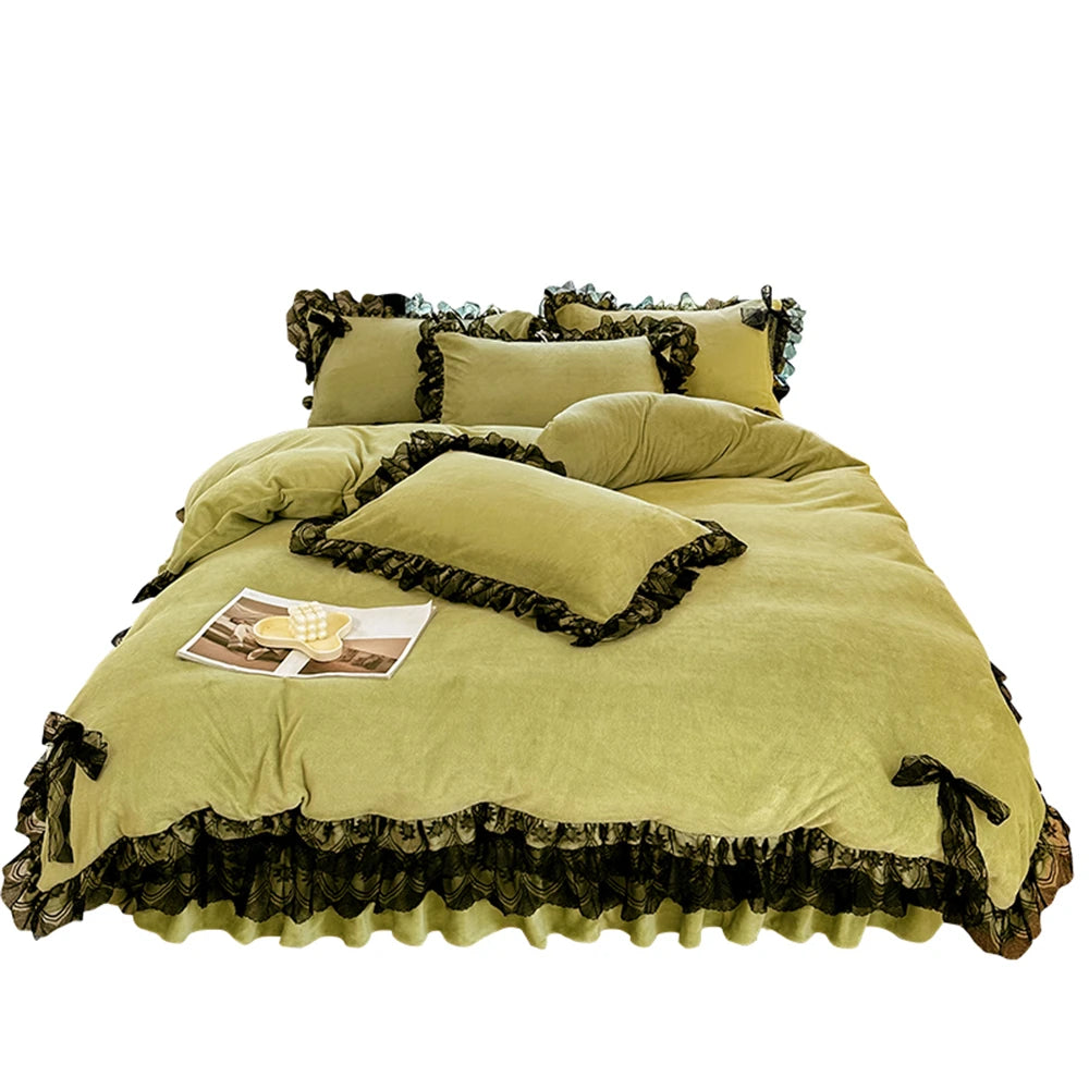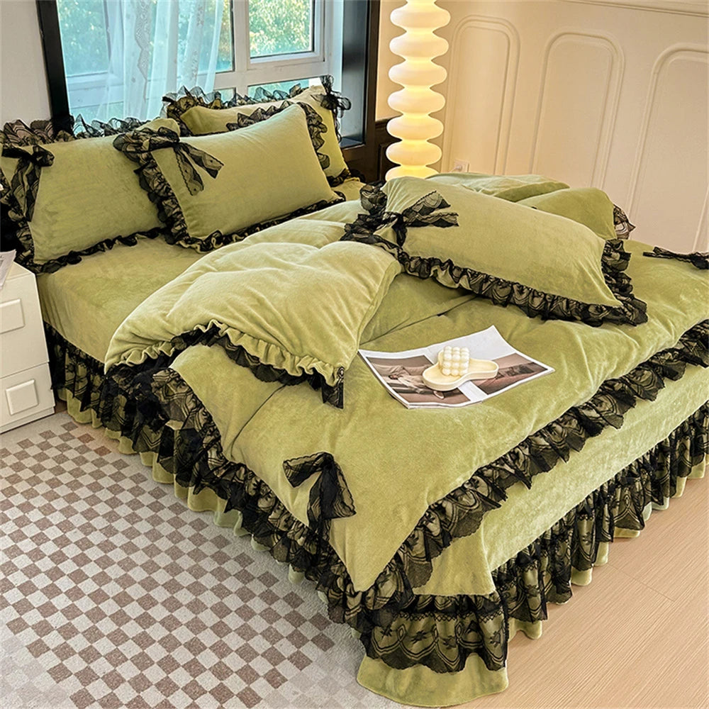 Erleben Sie opulenten Komfort mit unserem Samt-Bettwäscheset, das elegante Spitzenrüschen und hautfreundliches Material bietet, ideal für die kalte Jahreszeit. Fügen Sie Ihrem Schlafzimmer einen Hauch von Luxus hinzu, der Ihre Dekoration mit Raffinesse bereichert.