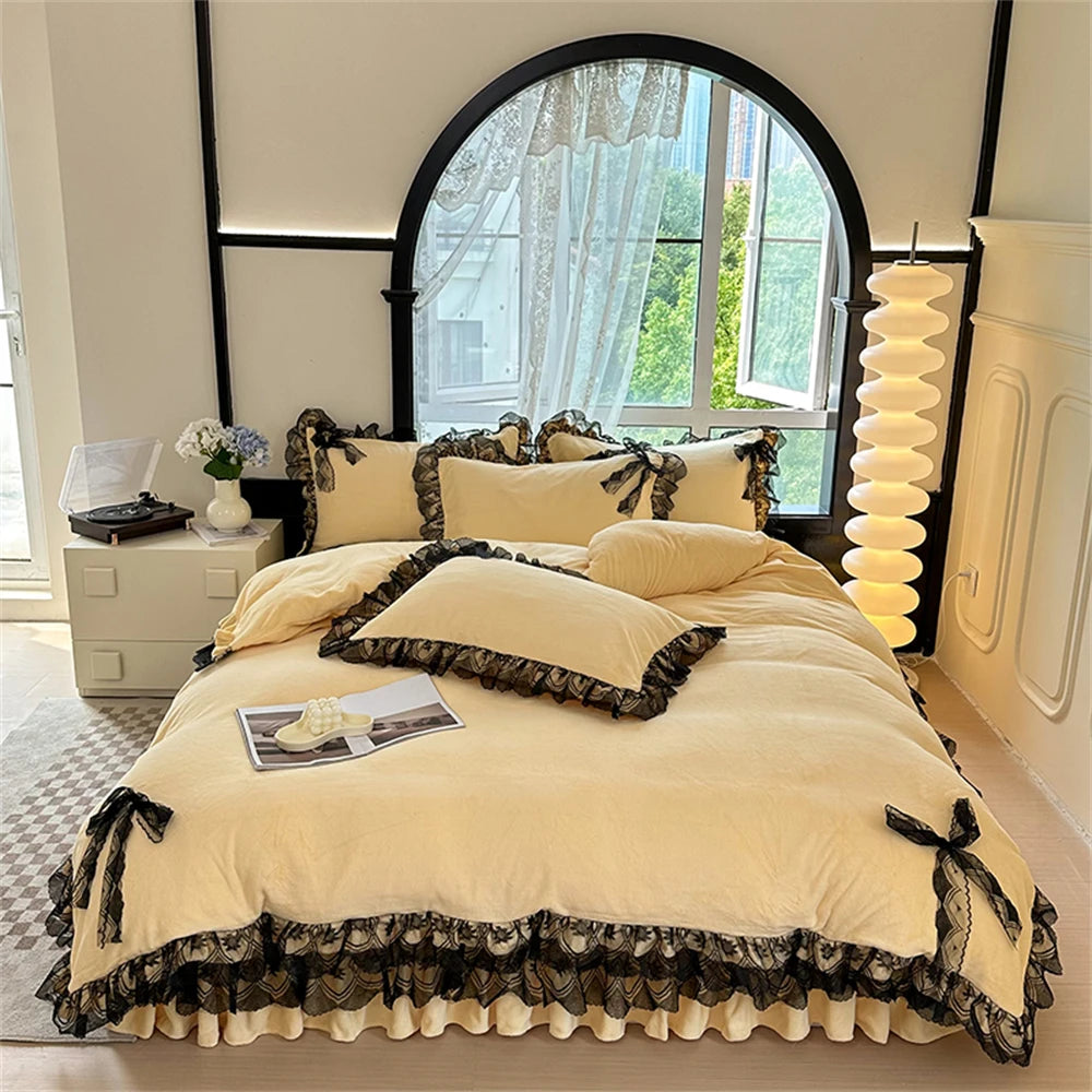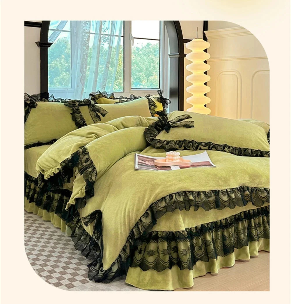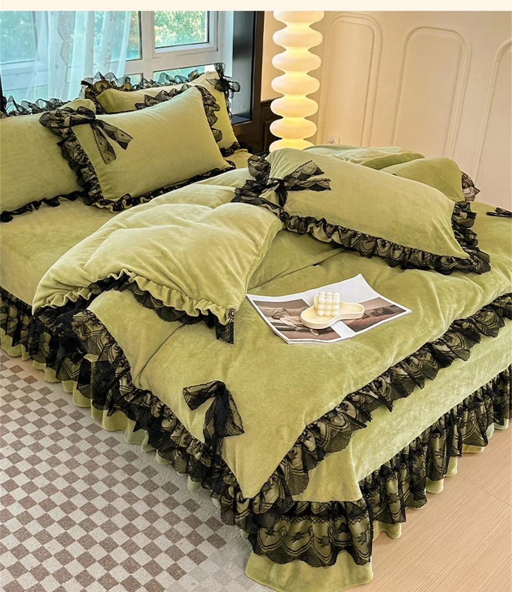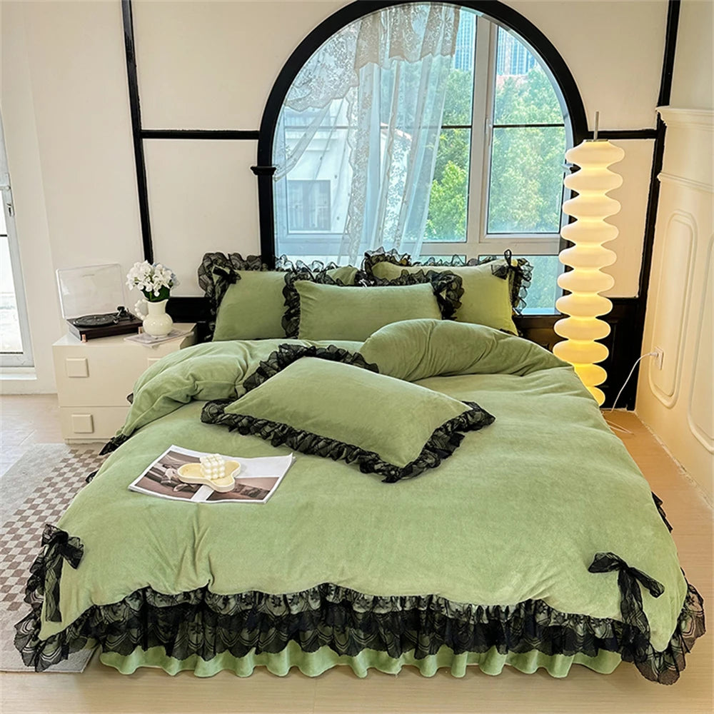 Erleben Sie opulenten Komfort mit unserem Samt-Bettwäscheset, das elegante Spitzenrüschen und hautfreundliches Material bietet, ideal für die kalte Jahreszeit. Fügen Sie Ihrem Schlafzimmer einen Hauch von Luxus hinzu, der Ihre Dekoration mit Raffinesse bereichert.
