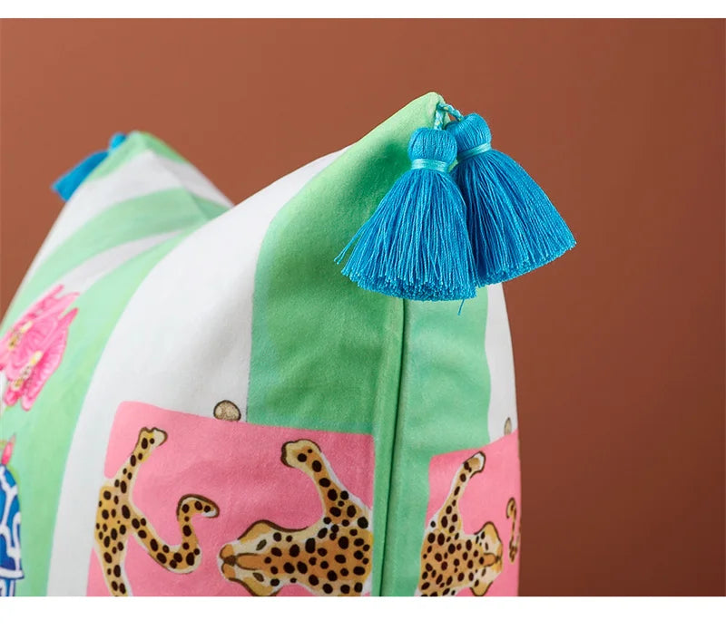 Ob Sie Ihr Wohnzimmer aufwerten oder Ihrem Schlafzimmer eine gemütliche Note verleihen möchten, dieser Kissenbezug ist die perfekte Wahl. Seine lebendigen Farben und das einzigartige Design machen ihn zu einem herausragenden Stück in jeder Dekoration.