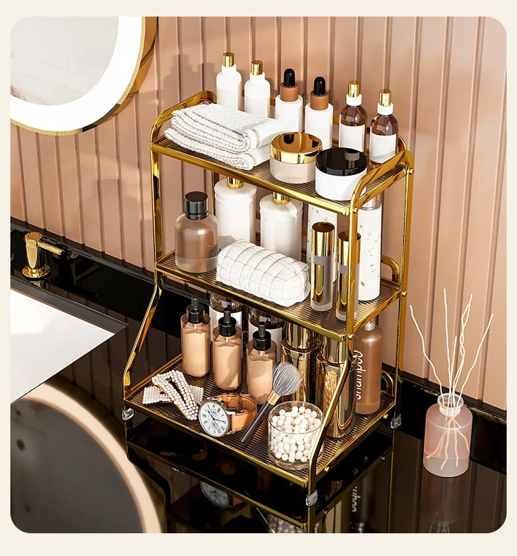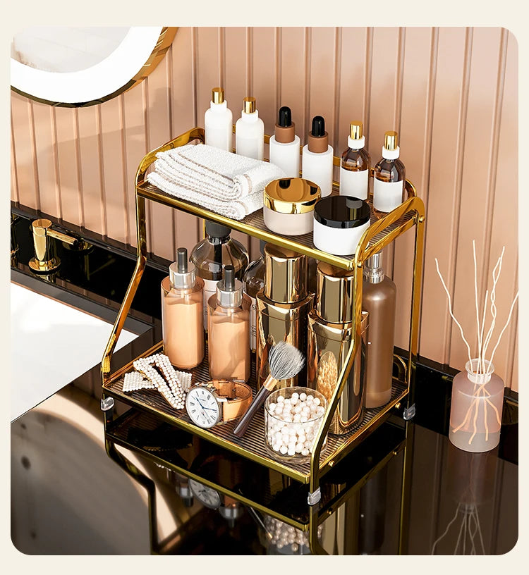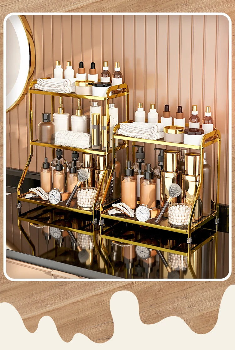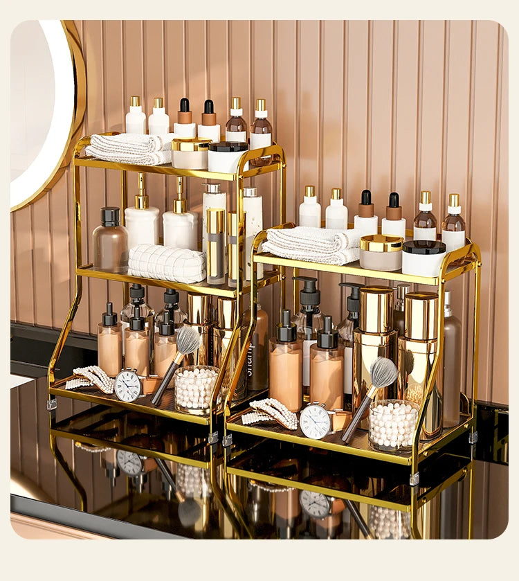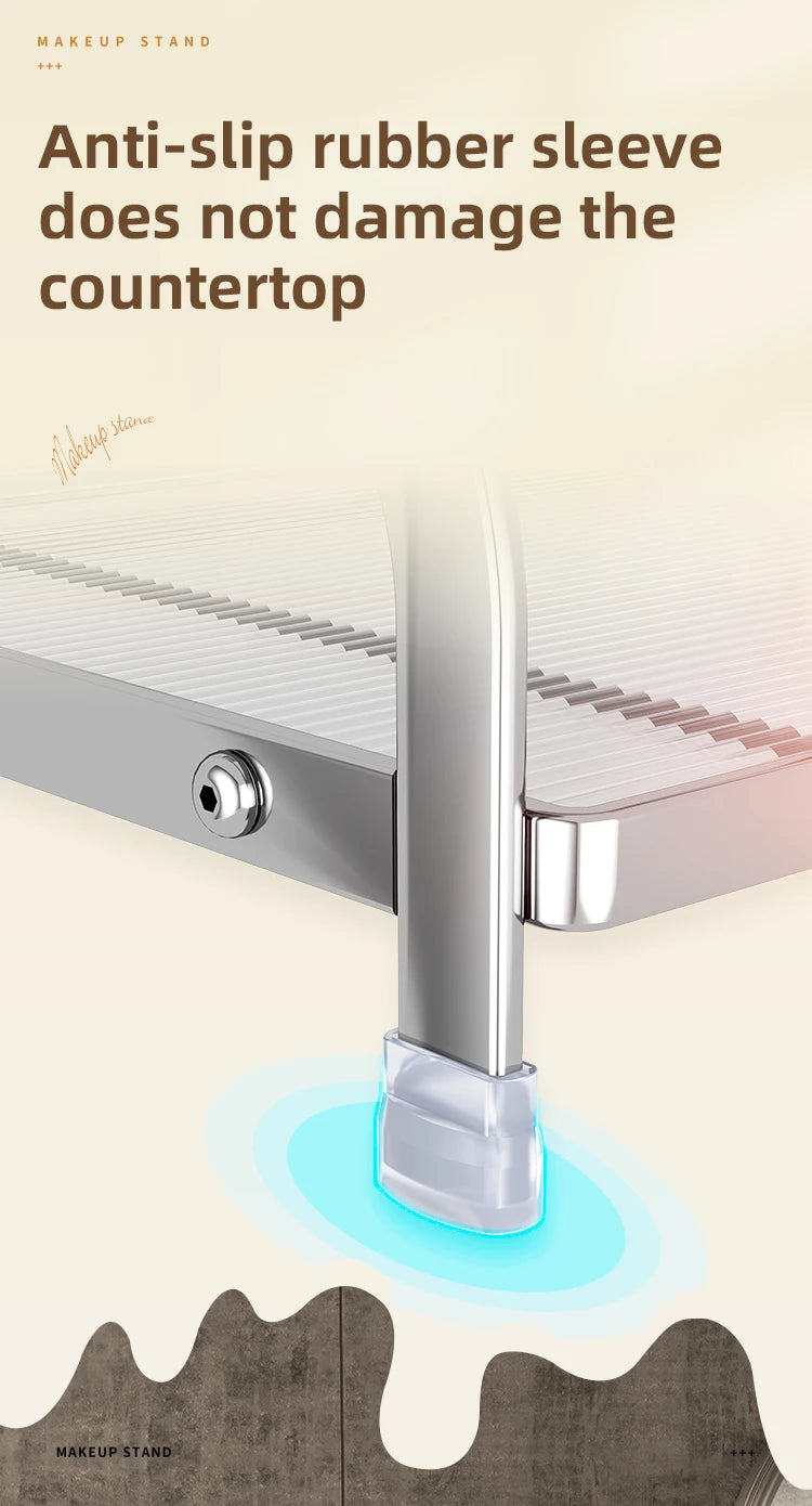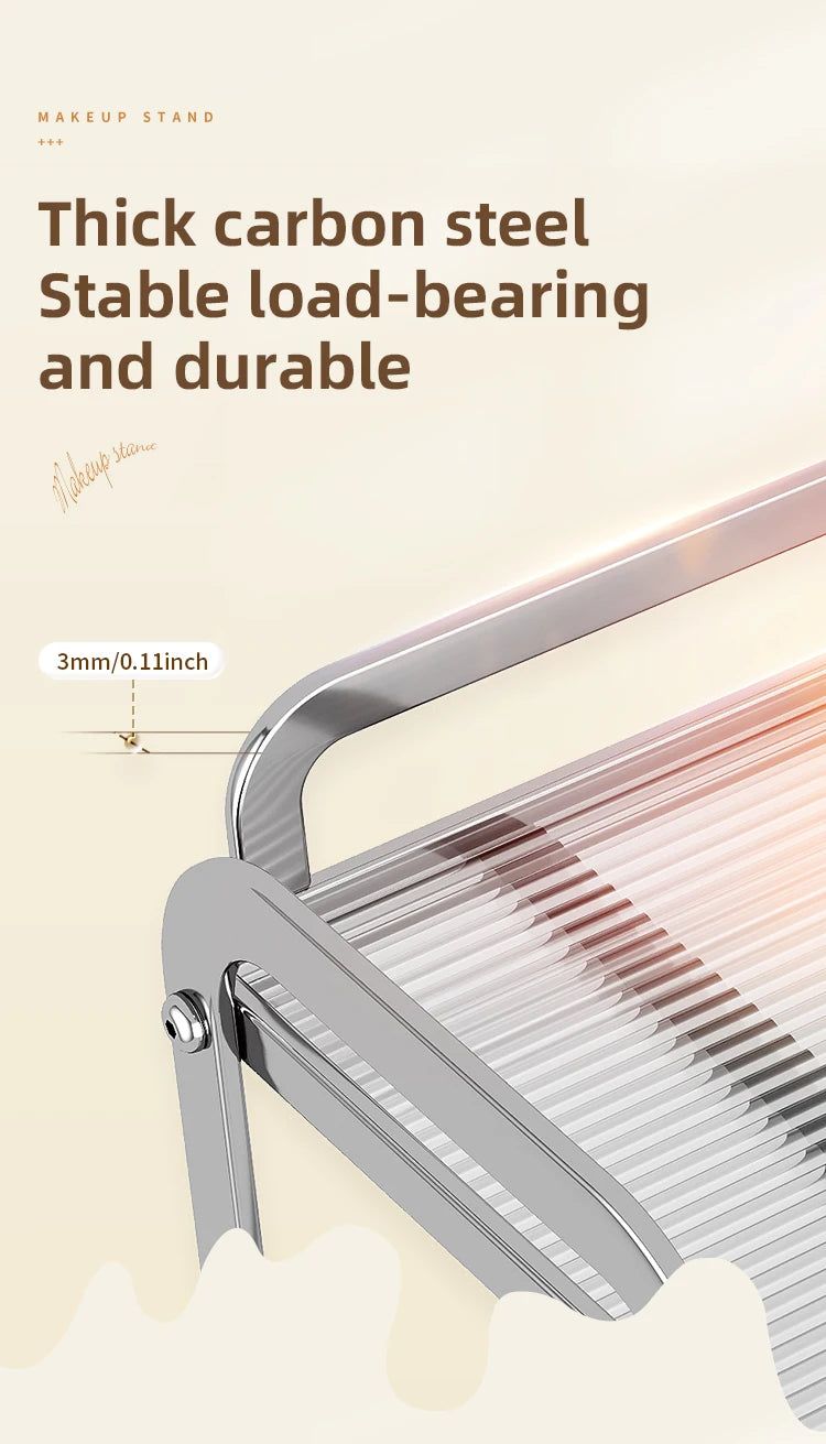 Dieses elegante R-förmige Schminkregal verändert Ihren Organisationsstil mit seinem schlanken Design und seinen praktischen Eigenschaften.