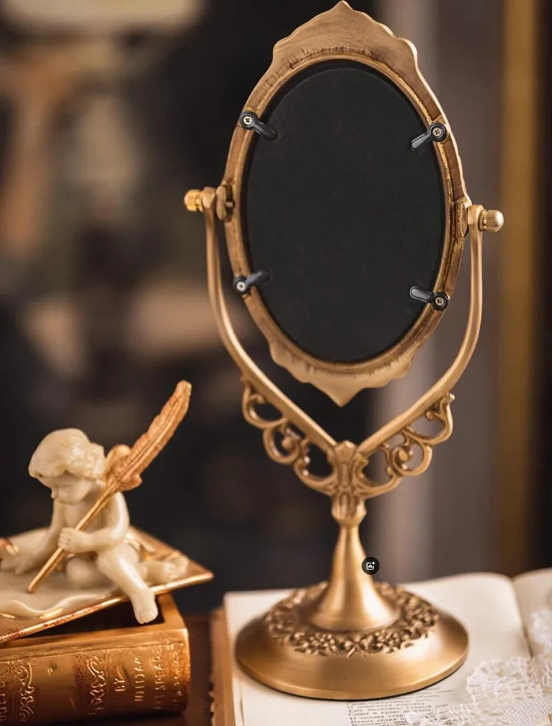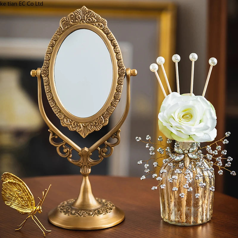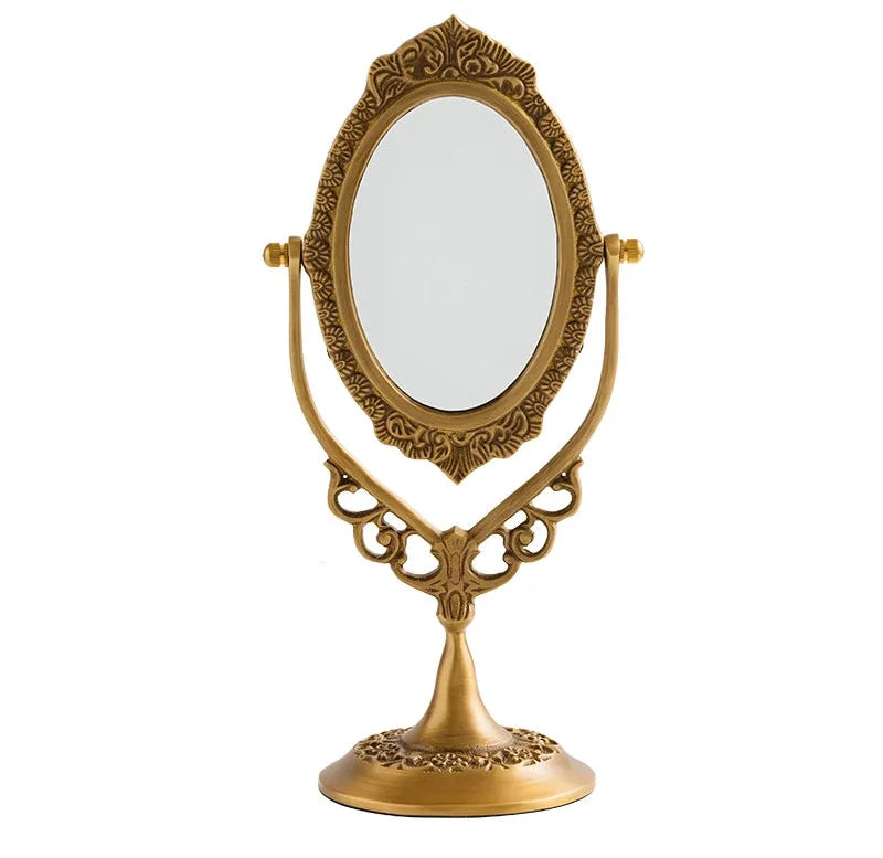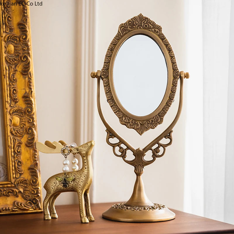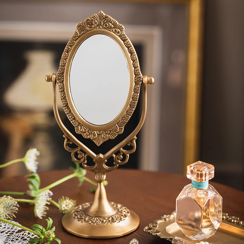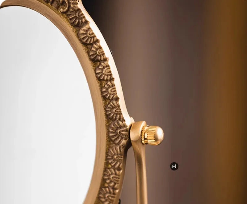 Erleben Sie Luxus mit unserem Schminkspiegel aus Vintage-Messing, kunstvoll gefertigt, um Ihre Einrichtung mit zeitlosem Charme zu verschönern.